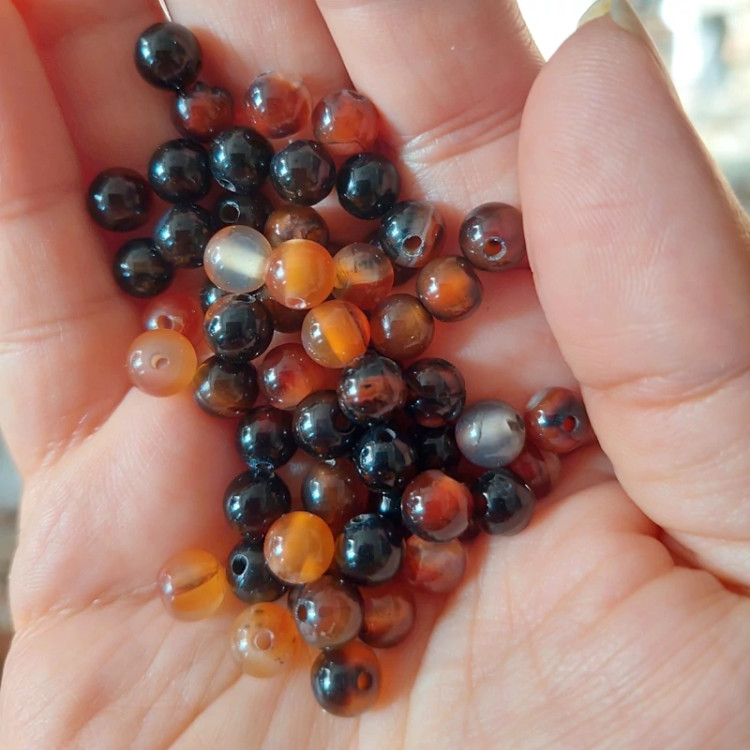 مهره سنگ عقیق سلیمانی سایز 6 سوراخ دار سنگ اصل طبیعی گوی