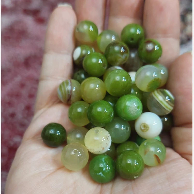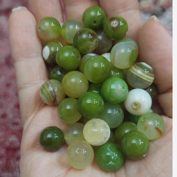 مهره سنگ عقیق سلیمانی سبز روشن سه بعدی سایز 10 سوراخ دار سنگ اصل طبیعی