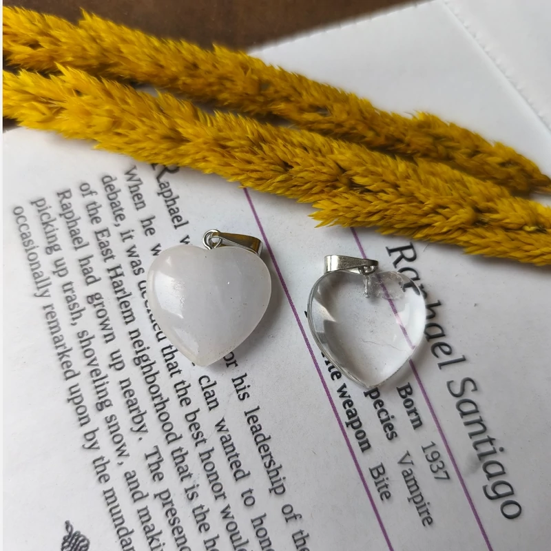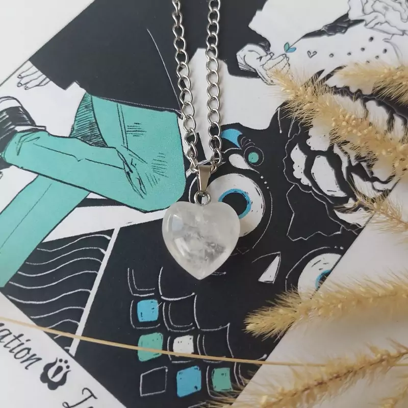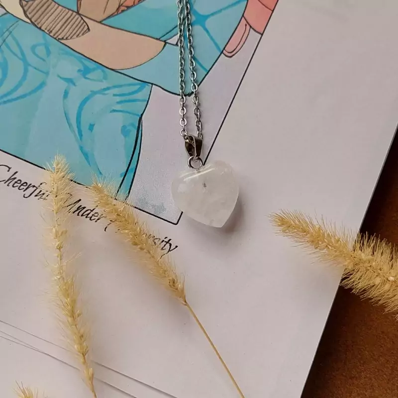 گردنبند سنگ کوارتز شفاف قلبی کریستال کوارتز به همراه زنجیر دیپلمات سنگ اصل