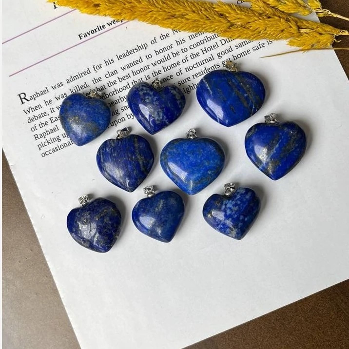 گردنبند سنگ لاجوردافغان قلبی با زنجیر دیپلمات سنگ اصل طبیعی درجه یک قلب تو پر آویز مدال
