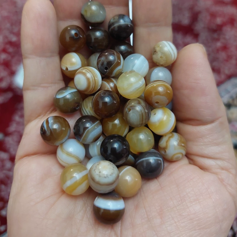مهره سنگ عقیق بوتسوانا سایز 10 سوراخ دار سنگ اصل طبیعی گوی