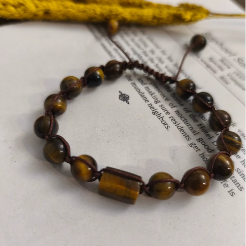 دستبند سنگ چشم ببر بافت و گره کشویی قابل تنظیم سنگ اصل