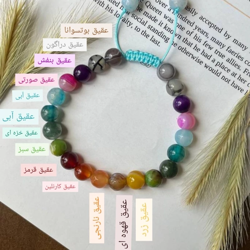 دستبند هفت سنگ عقیق سایز سنگ 8 سنگ اصل طبیعی