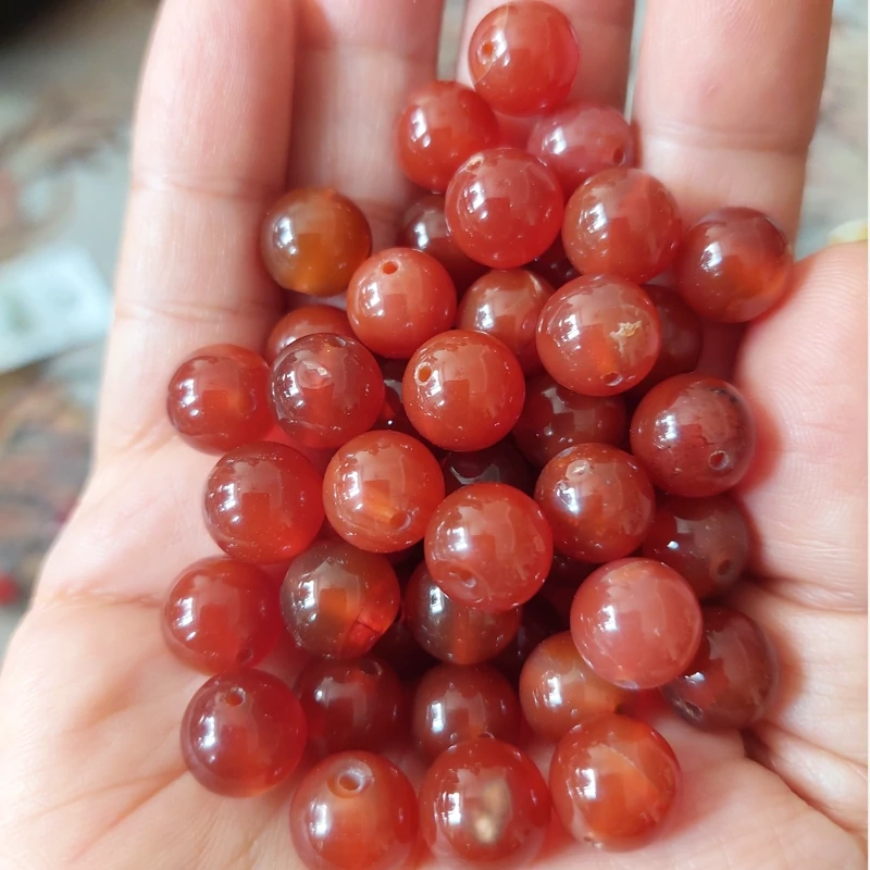 مهره عقیق قرمز سایز 10 سوراخ دار سنگ اصل طبیعی درجه یک گوی عقیق سرخ