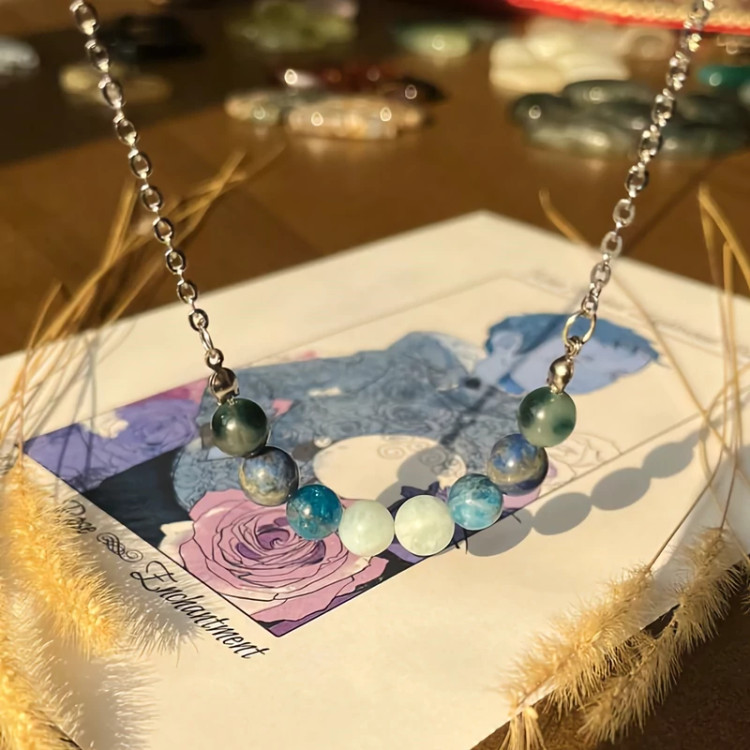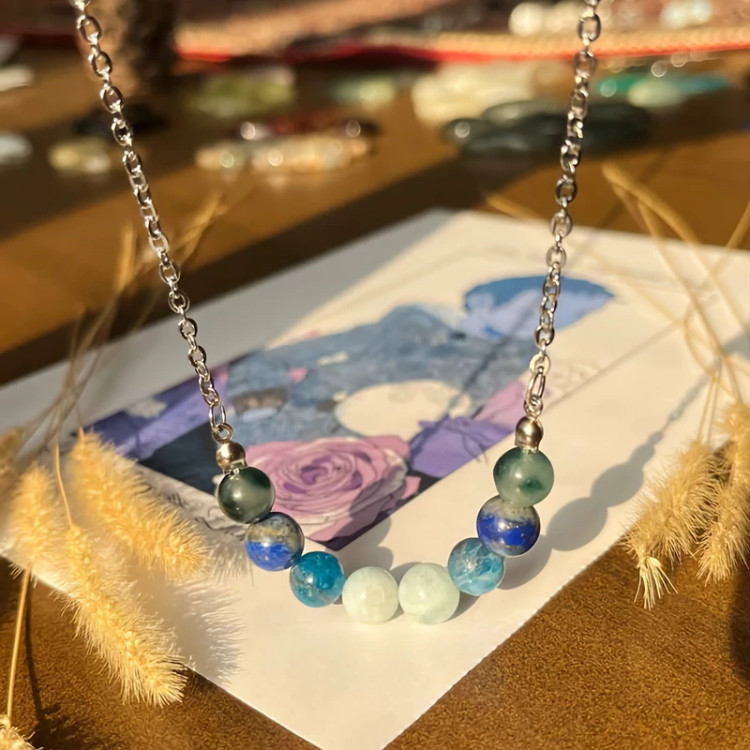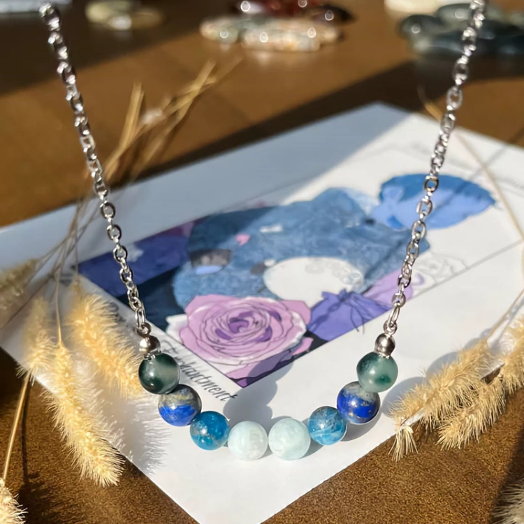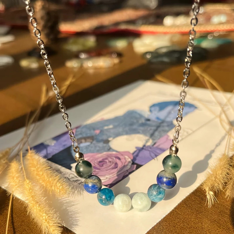 گردنبند سنگ آکوامارین آپاتیت لاجورد و جید سبز زمردی این سنگها اعتماد به نفس را بالا برده و باعث افزایش سخنوری می شود. قابل سفارش با زنجیر طلایی هممی باشد. گردنبند و دستبند با سنگهای دلخواه شما پذیرفته می شود. آکوامارین به معنای آبدریا🪼🩵 آکوامارین سنگ شجاعت و وقار هست. این سنگ سمبل آرامش هست و برای مدیتیشن فوق العاده هست چون باعث ایجاد آرامش در طبیعت و شخصیت دارنده اش می شود و استرس و اضطراب را کاهش می دهد. اگر ترس از سخنرانی در مجامع عمومی را دارید حتما از اسن سنگ استفاده کنید . این سنگ برای درمان دردهای گلو و گردن بسیار مفید هست.