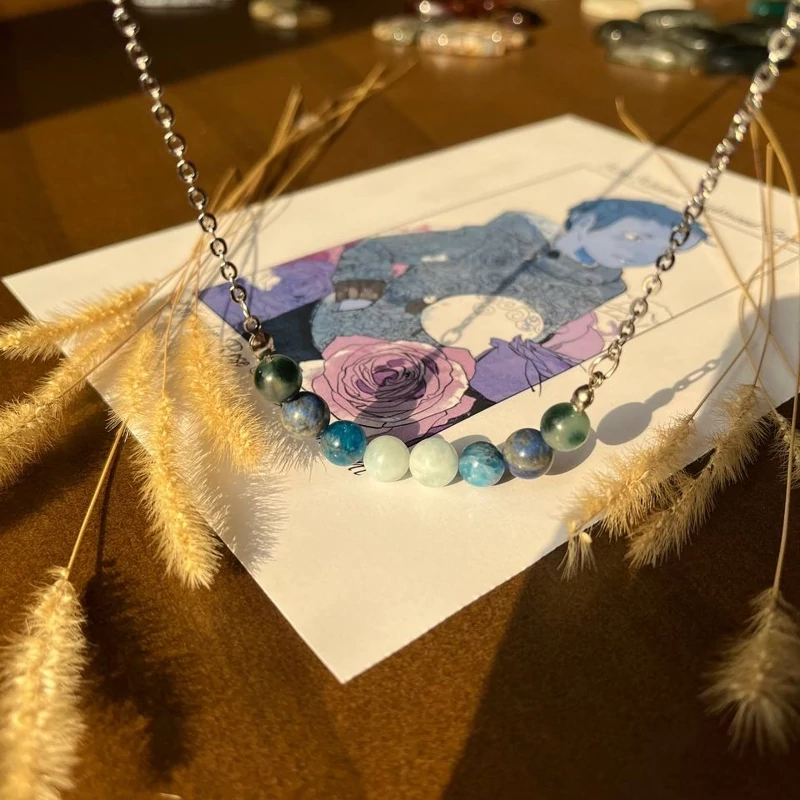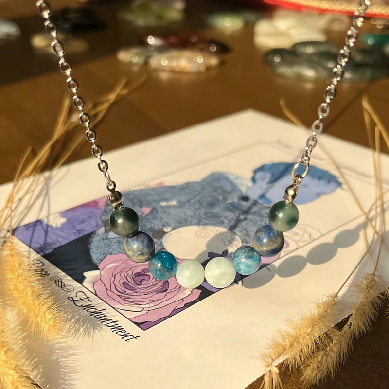 گردنبند سنگ آکوامارین لاجورد آپاتیت و جید سبز زمردی سنگ اصل درجه یک افزایش سخنوری
