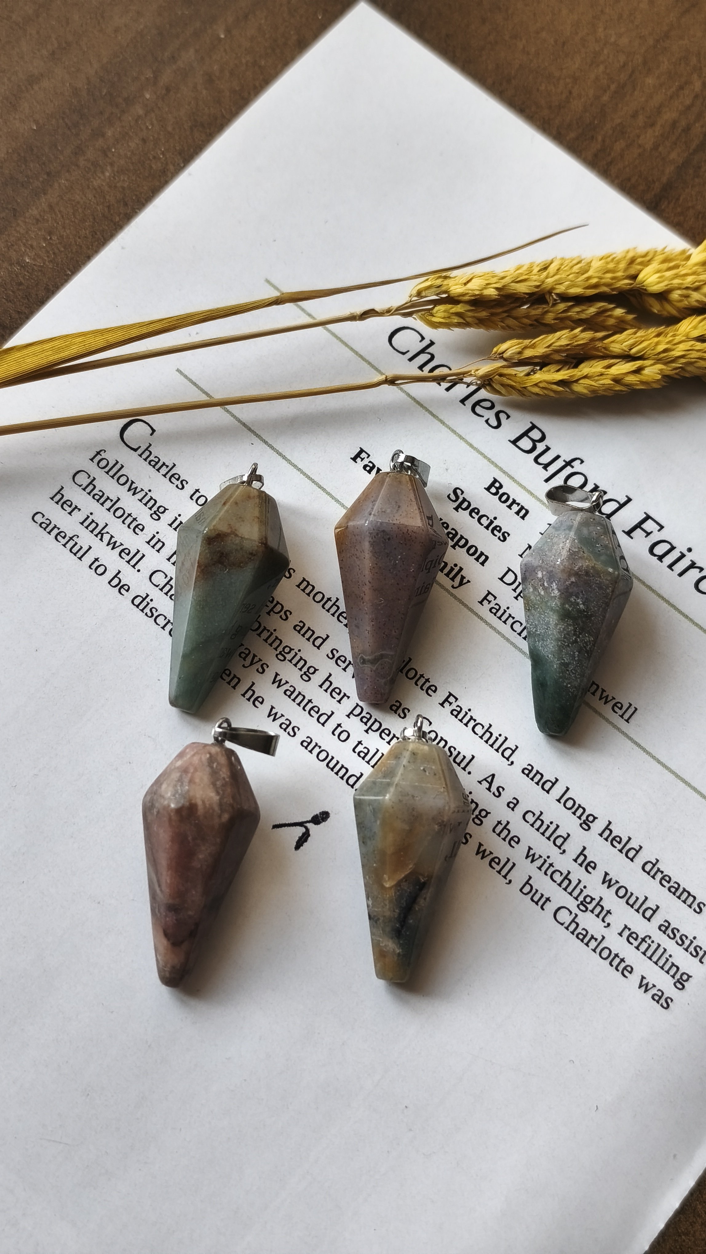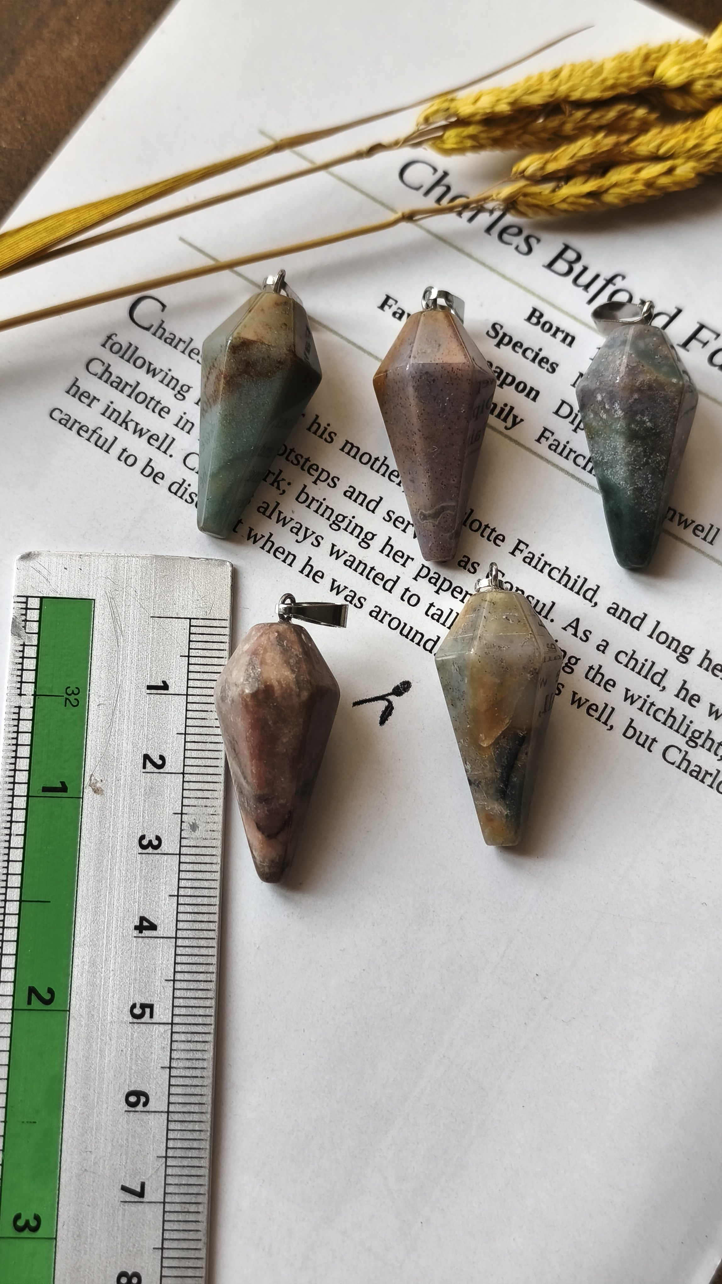گردنبند سنگ عقیق خزه ای پاندولی سنگ اصل طبیعی به همراه زنجیر استیل شاقول ابن سینا