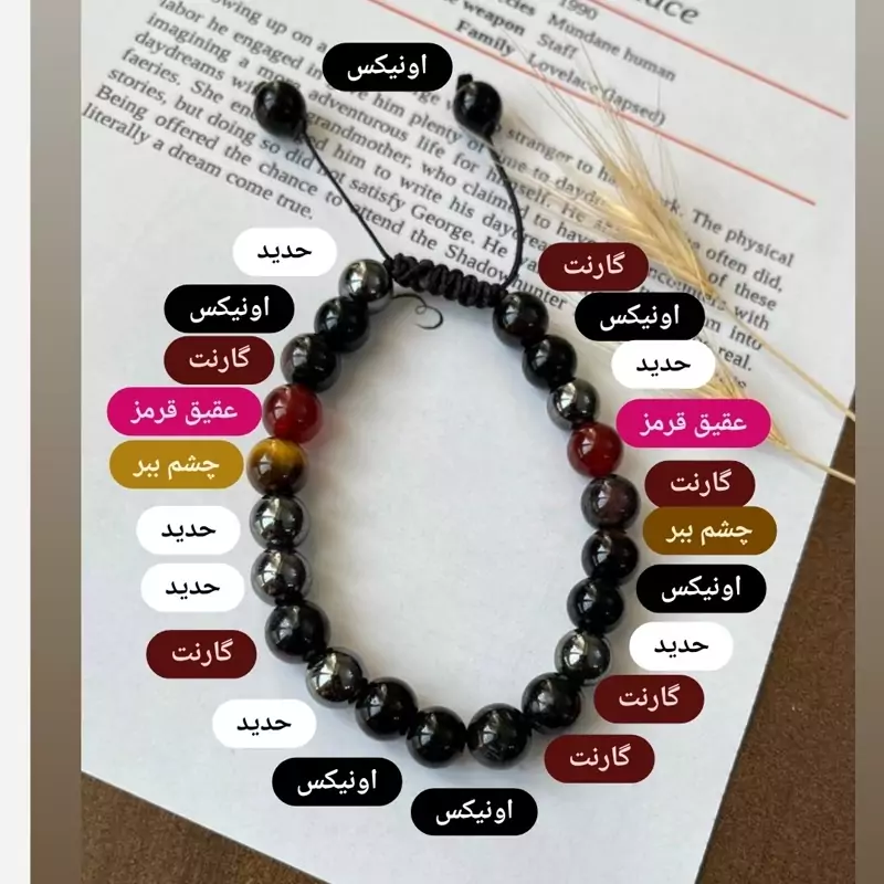 دستبند گارنت عقیق قرمز هماتیت اونیکس چشم ببر