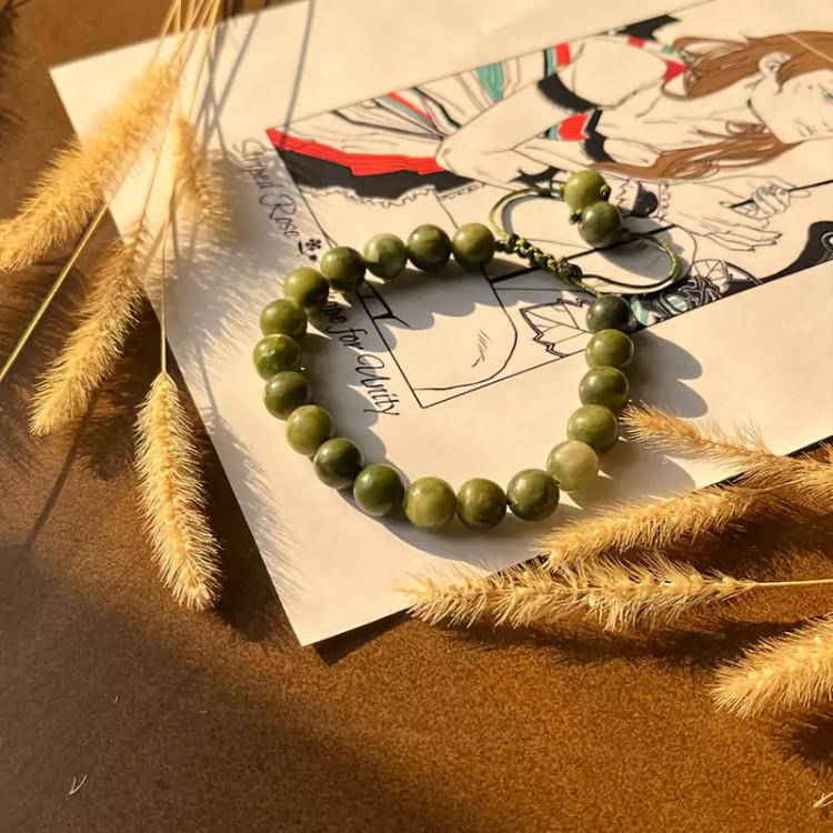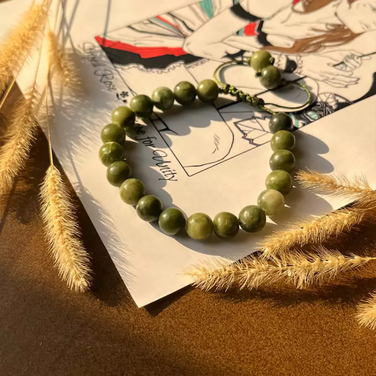 دستبند سنگ یشم ساخته شده با نخ درجه یک سنگ اصل طبیعی
