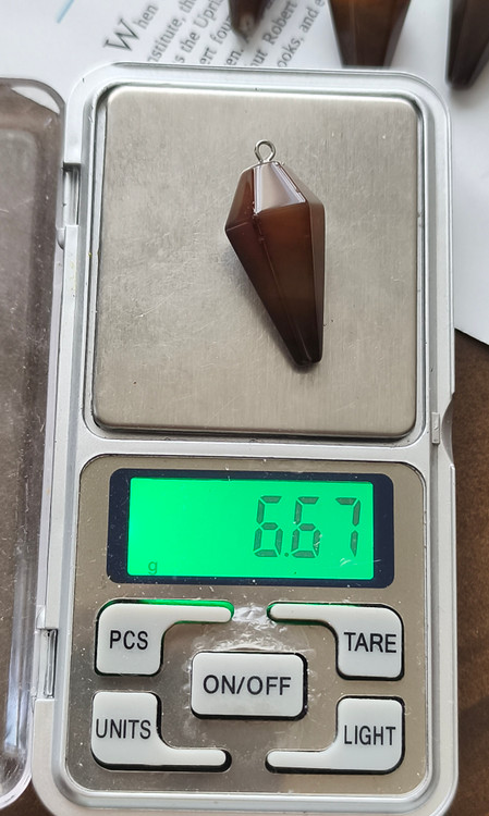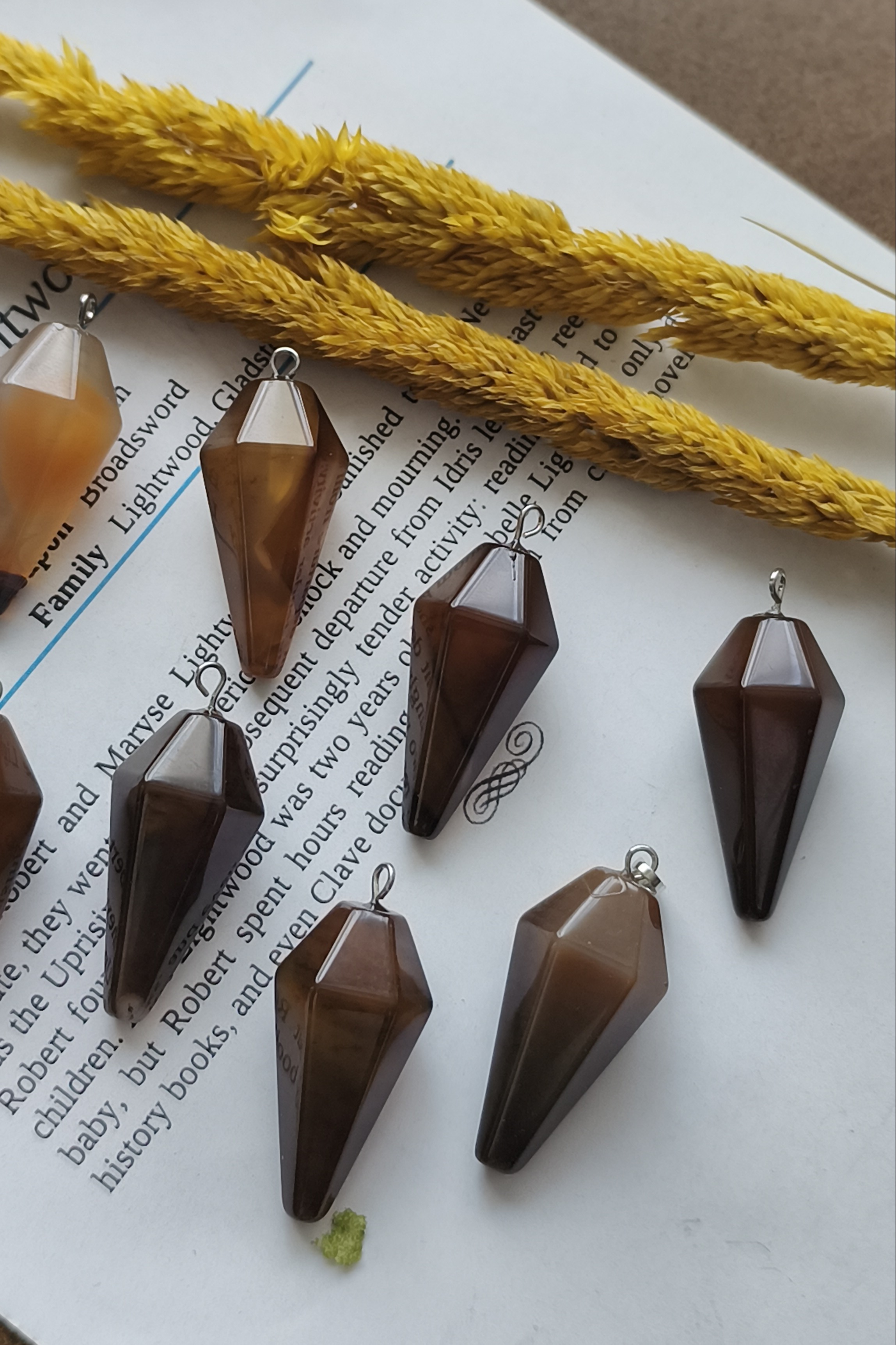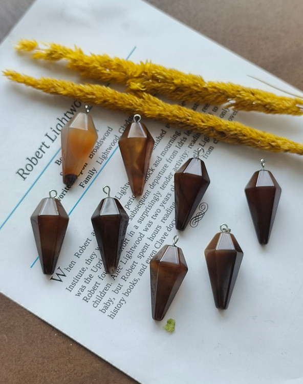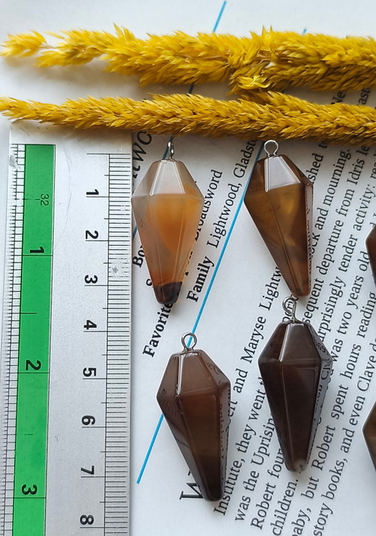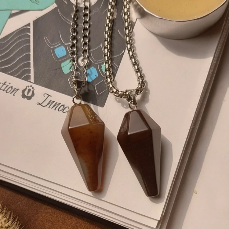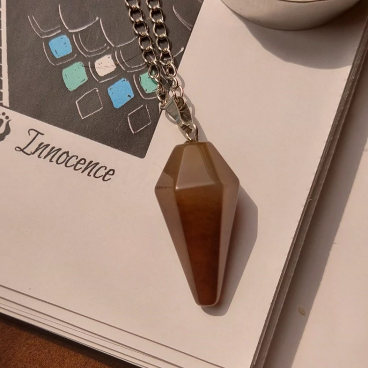 گردنبند سنگ عقیق قهوه ای پاندولی با زنجیر استیل دیپلمات یا ویتالی سنگ اصل شاقول ابن سینا