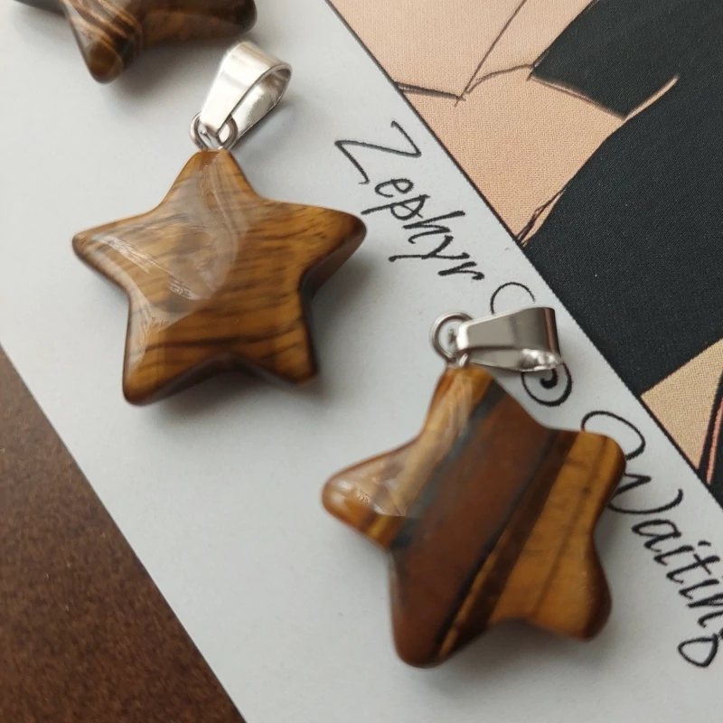گردنبند سنگ چشم ببر ستاره سنگ اصل درجه یک گردن آویز مدال به همراه زنجیر یا بند چرم