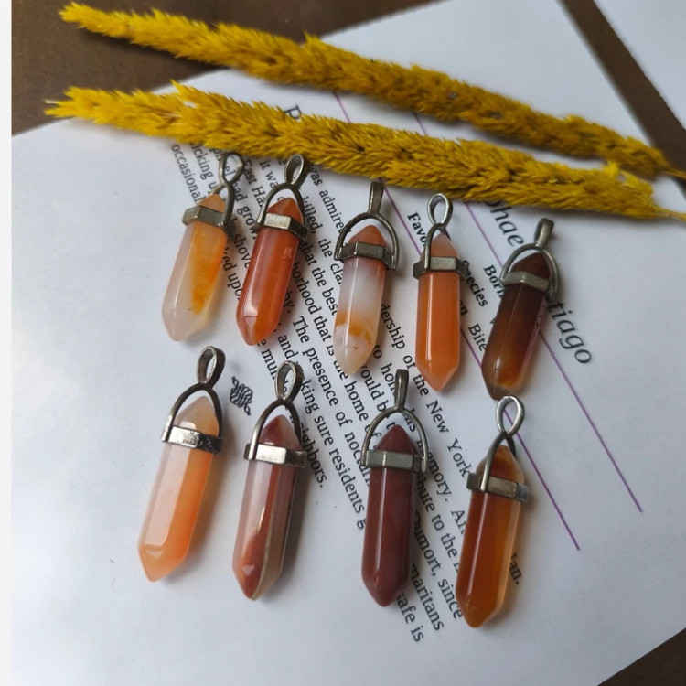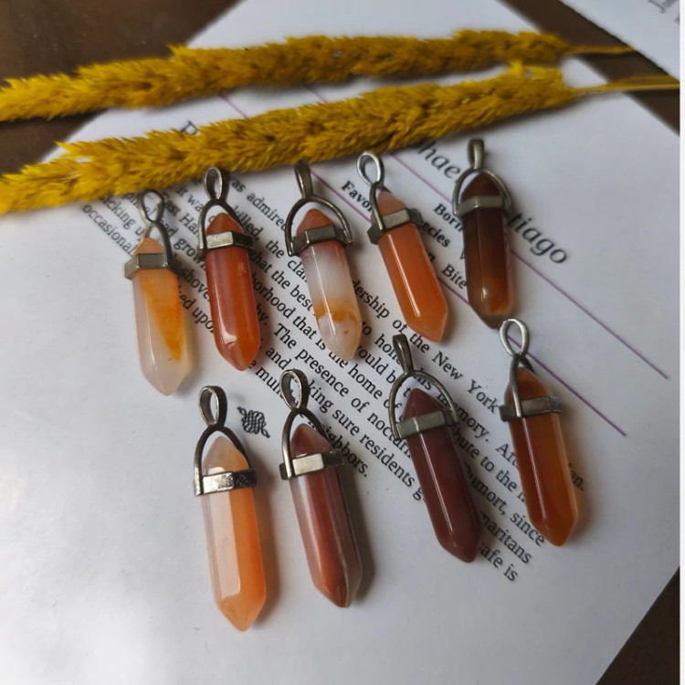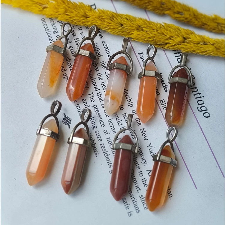 گردنبند عقیق کارنلین منشوری اویز مدال سنگ اصل درجه یک طبیعی به همراه زنجیر یا بند چرم