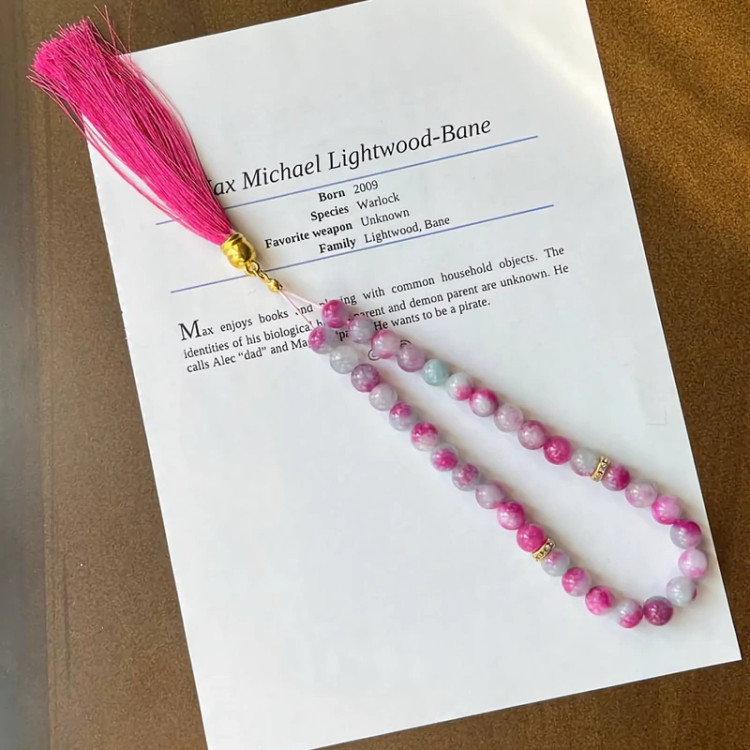 تسبیح جید صورتی خاکستری 33 دانه سایز 8 سنگ اصل طبیعی