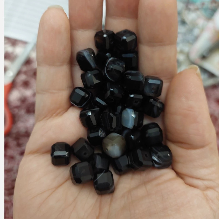 مهره عقیق سلیمانی باکسی مکعبی سایز 10 سنگ اصل طبیعی سوراخ دار سلیمانی مشکی سیاه