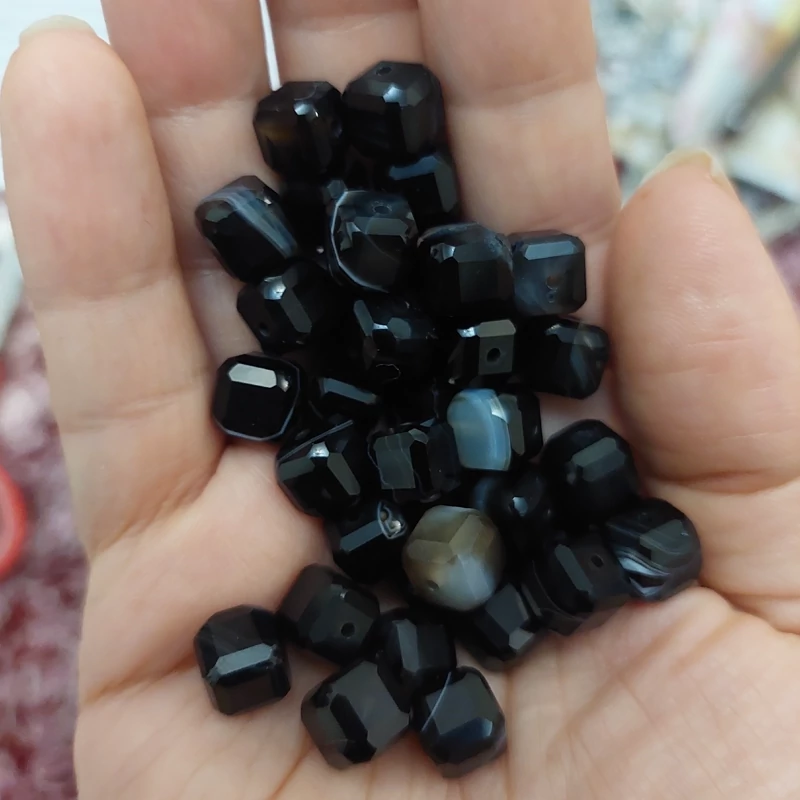 مهره عقیق سلیمانی باکسی مکعبی سایز 10 سنگ اصل طبیعی سوراخ دار سلیمانی مشکی سیاه