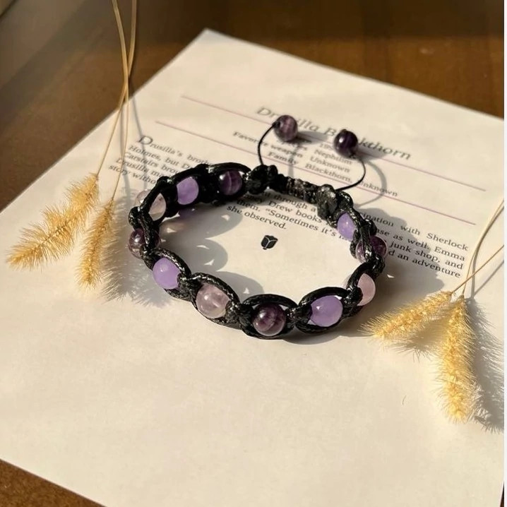 دستبند سنگ آمیتیست سوسنی عقیق بنفش ماداگاسکار جید بنفش