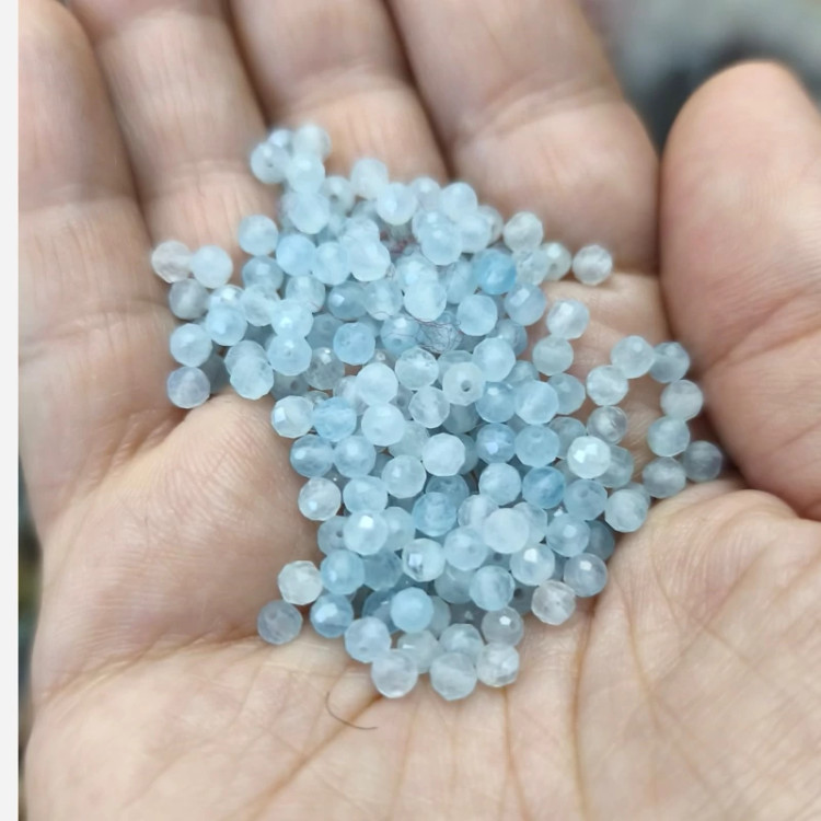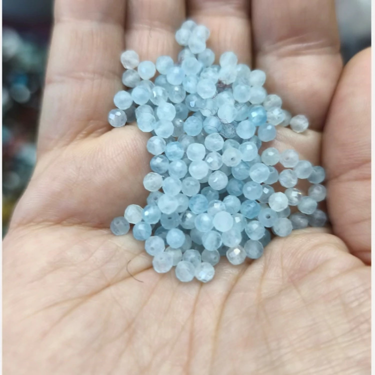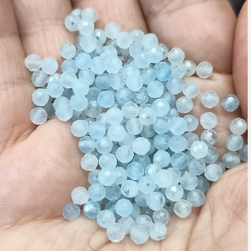 مهره سنگ آکوامارین تراش جواهری سایز 4سنگ اصل طبیعی سوراخ دار