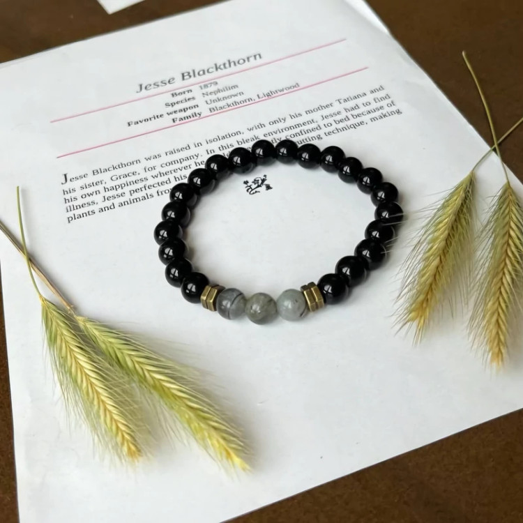دستبند کشی سنگ اونیکس سیاه و لابرادوریت سنگ اصل درجه یک طبیعی