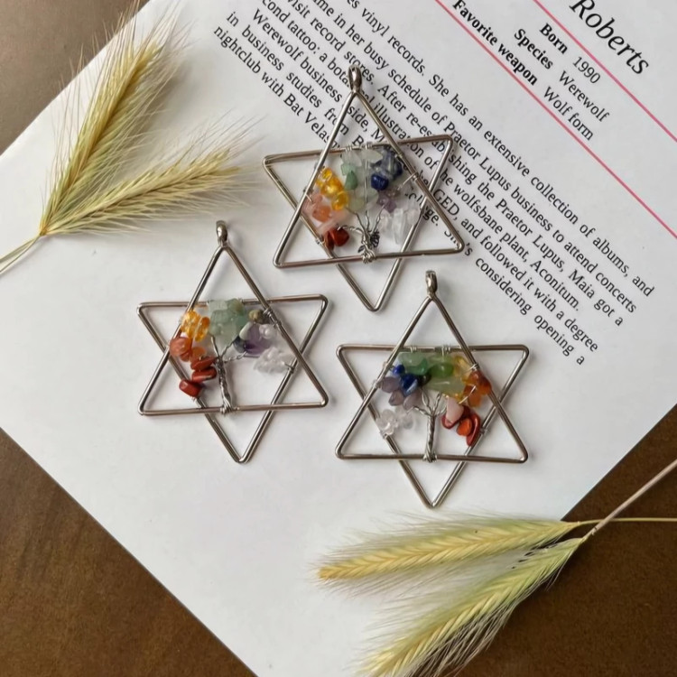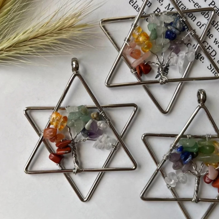 گردنبند هفت چاکرا مدل ستاره سنگ اصل درجه یک آویز مدال به همراه زنجیر یا بند چرم هدیه