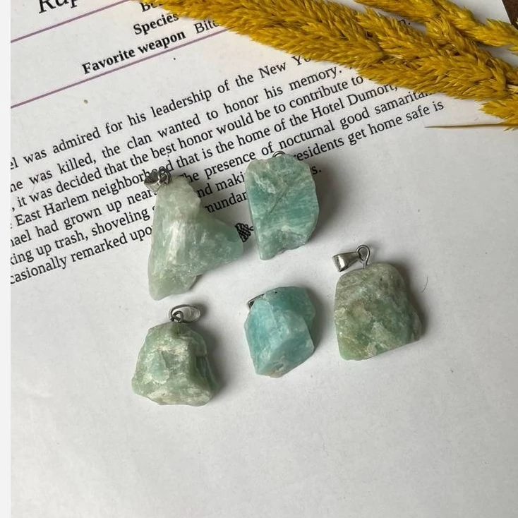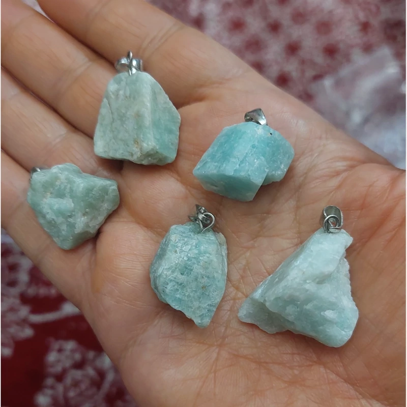 گردنبند سنگ آمازونیت تراش نخورده سنگ اصل درجه یک راف دفرمه به همراه زنجیر استیل