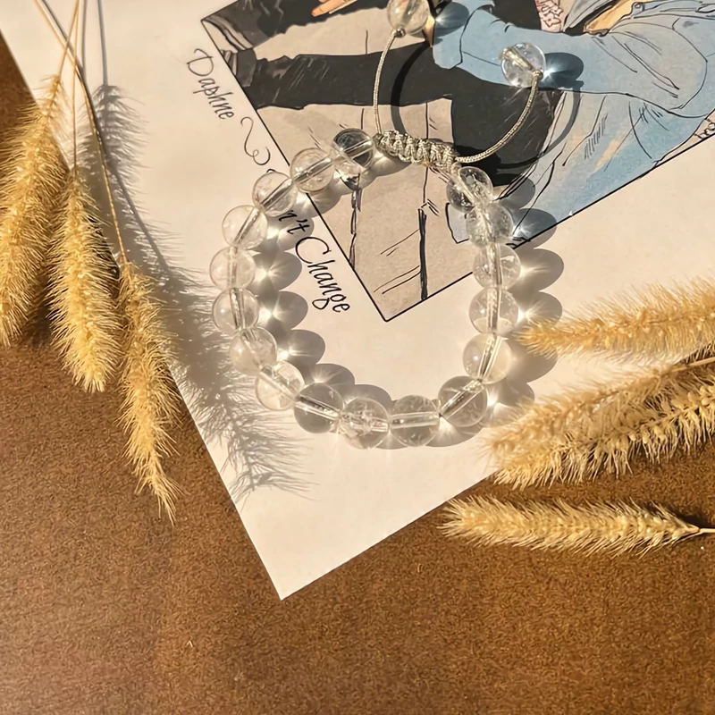 دستبند سنگ کریستال کوارتز شفاف درجه یک به همراه گره کشویی قابل تنظیم سایز