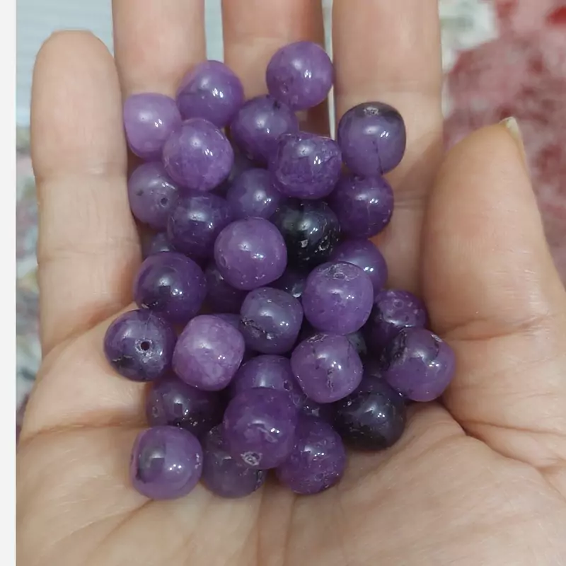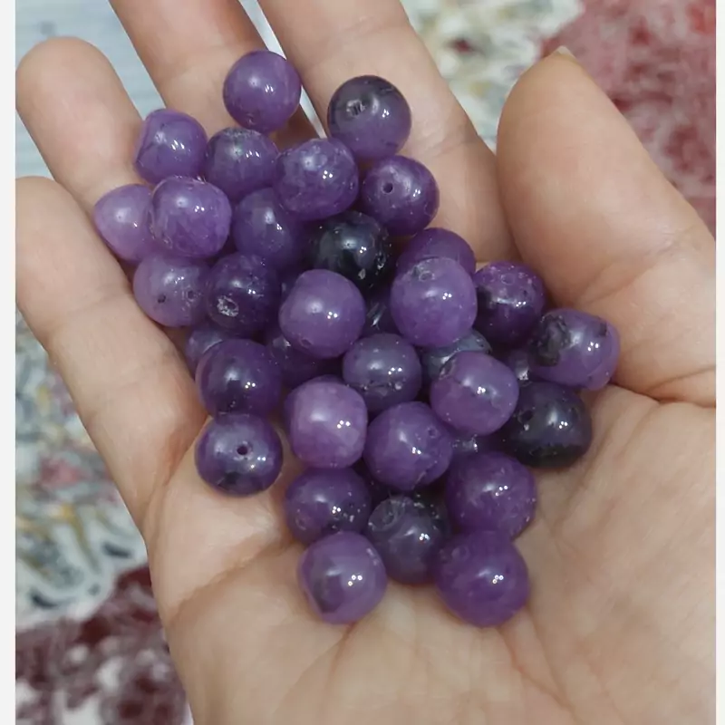 مهره سنگ جید بنفش روشن تراش کسمه سوراخ دار سایز سنگ اصل طبیعی 10 جید یاسی