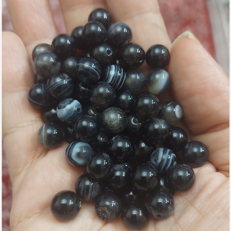 مهره سنگ عقیق سلیمانی مشکی سیاه سایز 8 سوراخ دار
