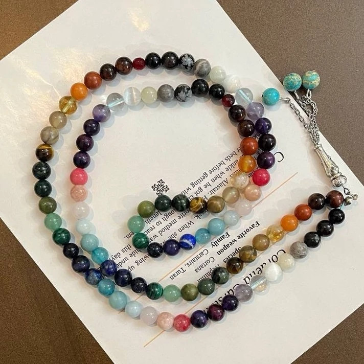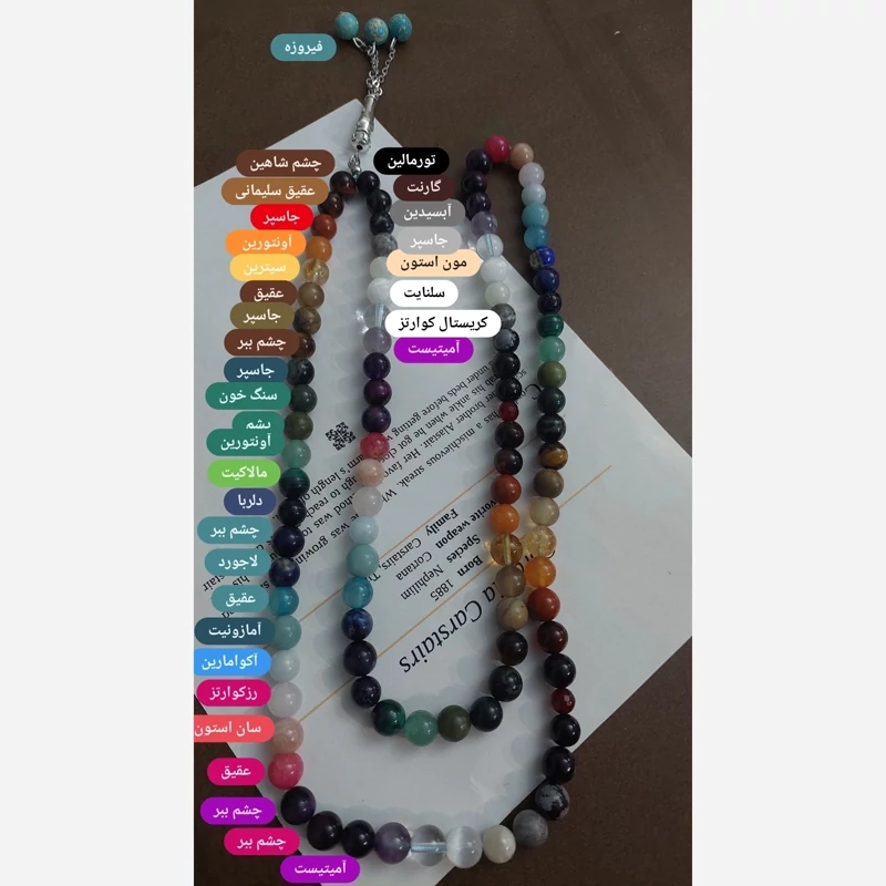 تسبیح فول انرژیک 101 دانه اصل طبیعی ساخته شده از 34 نوع سنگ اصل