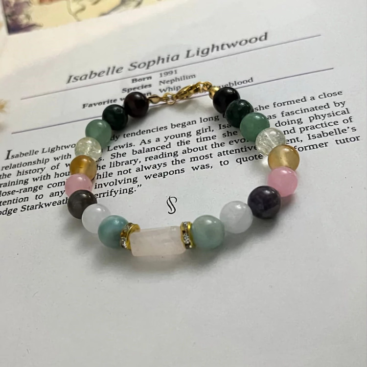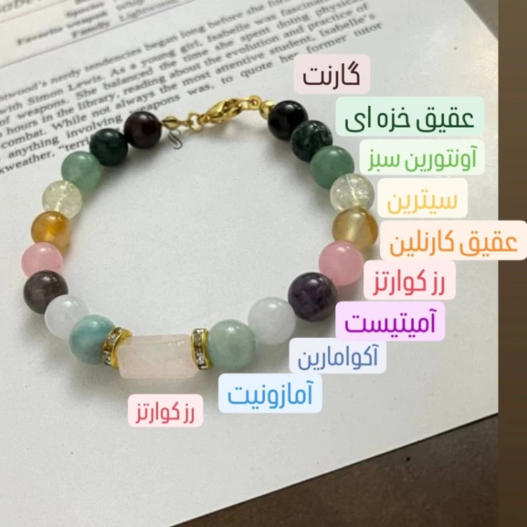 دستبند ماه تیر آکوامارین سیترین رزکوارتز آمیتیست گارنت عقیق کارنلین عقیق خزه ای آمازونیت آونتورین سبز