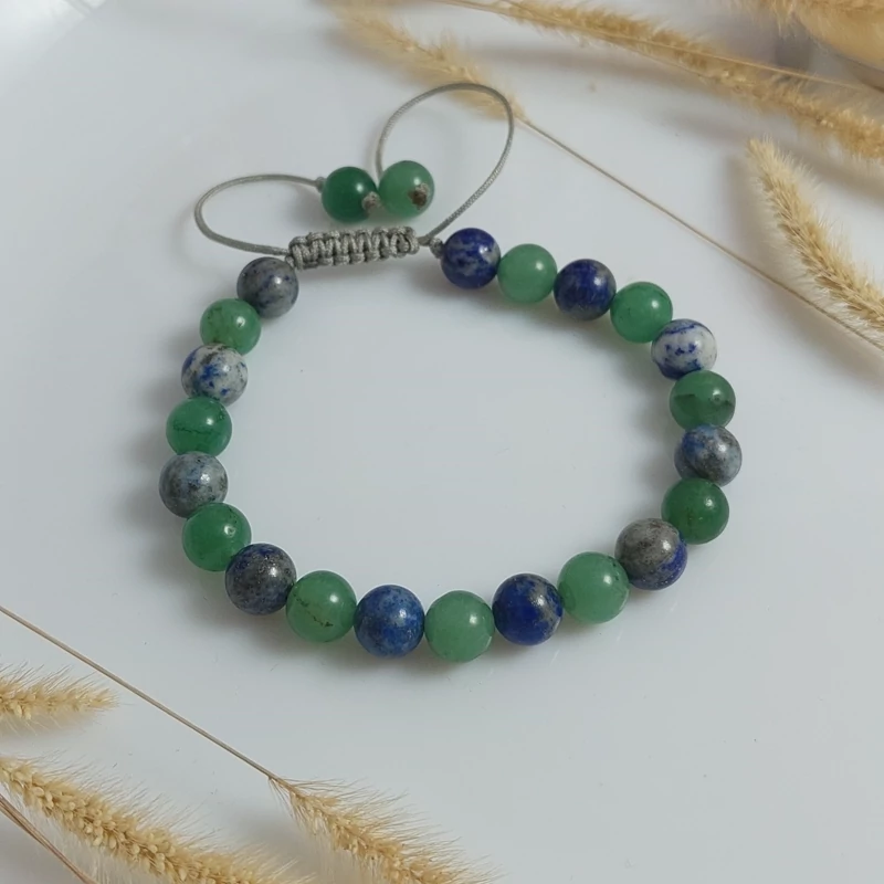 دستبند سنگ آونتورین سبز و لاجورد ساخته شده از سنگ اصل و بند ابریشمی با کیفیت اعلا با گره کشویی قابل تنظیم