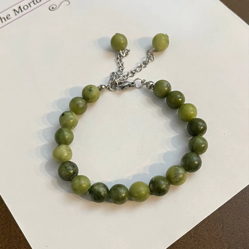 دستبند سنگ یشم با قفل و زنجیر استیل رنگ ثابت
