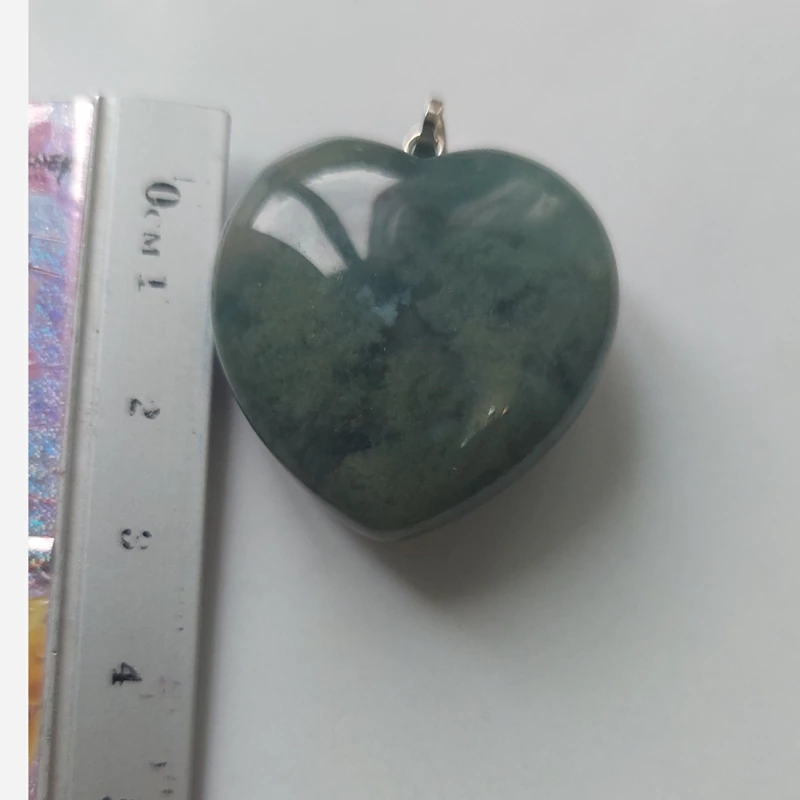گردنبند سنگ عقیق خزه ای قلبی تپل سنگ اصل آویز مدال به همراه زنجیر استیل