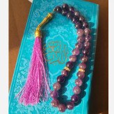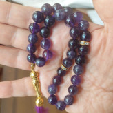 تسبیح سنگ آمیتیست 33 دانه سایز سنگ 8 میل سنگ اصل طبیعی معدنی