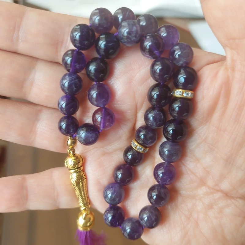 تسبیح آمیتیست ۳۳ دانه با سنگهای شفابخش و بنفش عمیق خود، یکی از بهترین انتخابها برای آرامسازی ذهن، کاهش استرس و افزایش تمرکز است. آمیتیست که به سنگ محافظ انرژی و سنگ آرامش روح مشهور است، ارتعاشی ملایم اما قدرتمند دارد و هنگام ذکر، مراقبه و حتی استفاده روزمره، ذهن را از انرژیهای منفی پاک میکند.