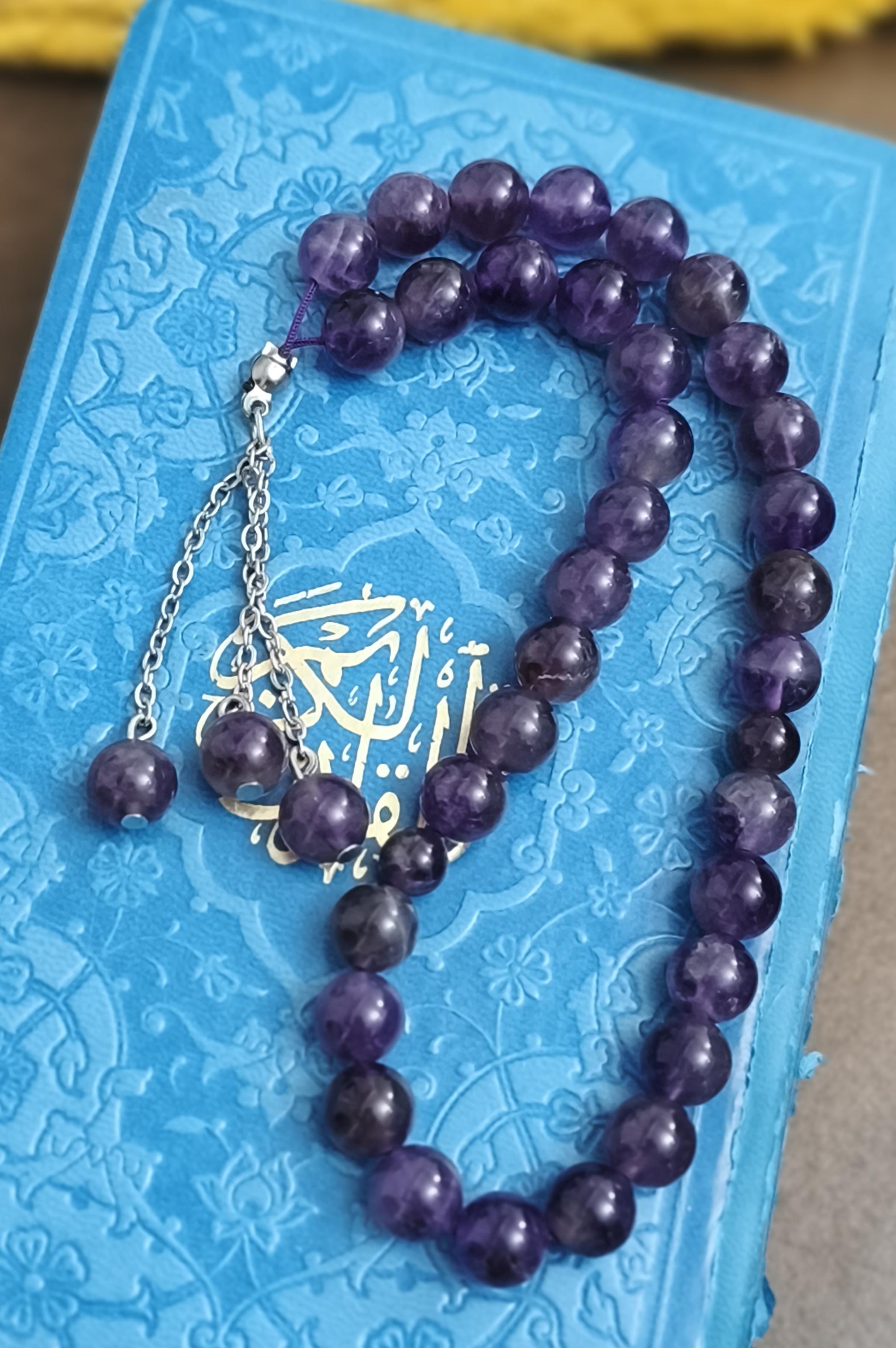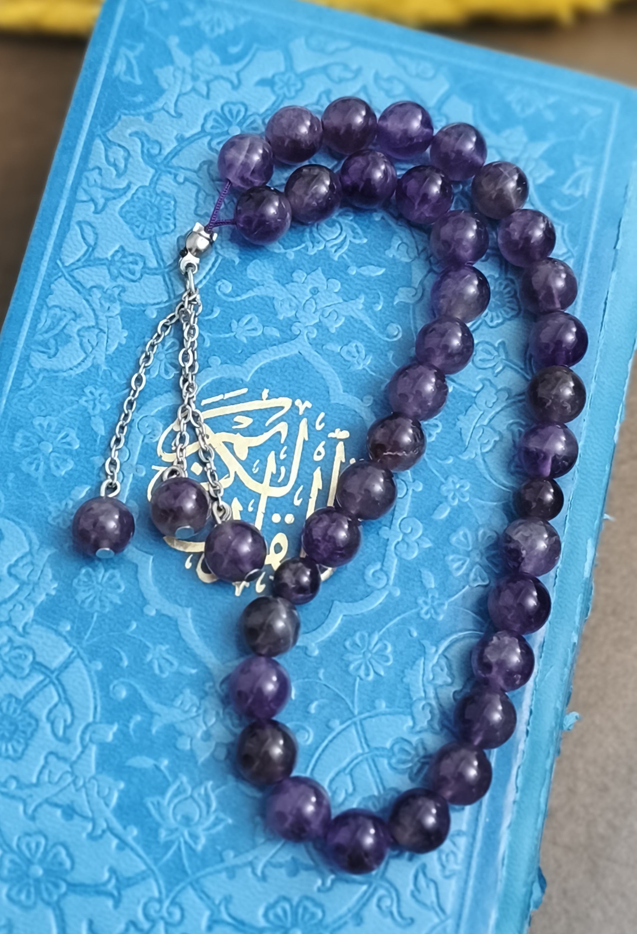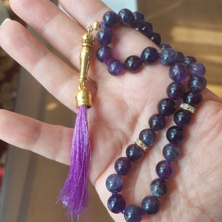 در زمان ذکر یا مدیتیشن، هر دانه را آرام حرکت دهید و با هر نفس، اجازه دهید انرژی آرامبخش آمیتیست ذهن و قلبتان را سبک کند.