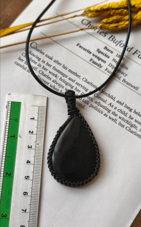 گردنبند سنگ عقیق سیاه با بافت و بند چرم