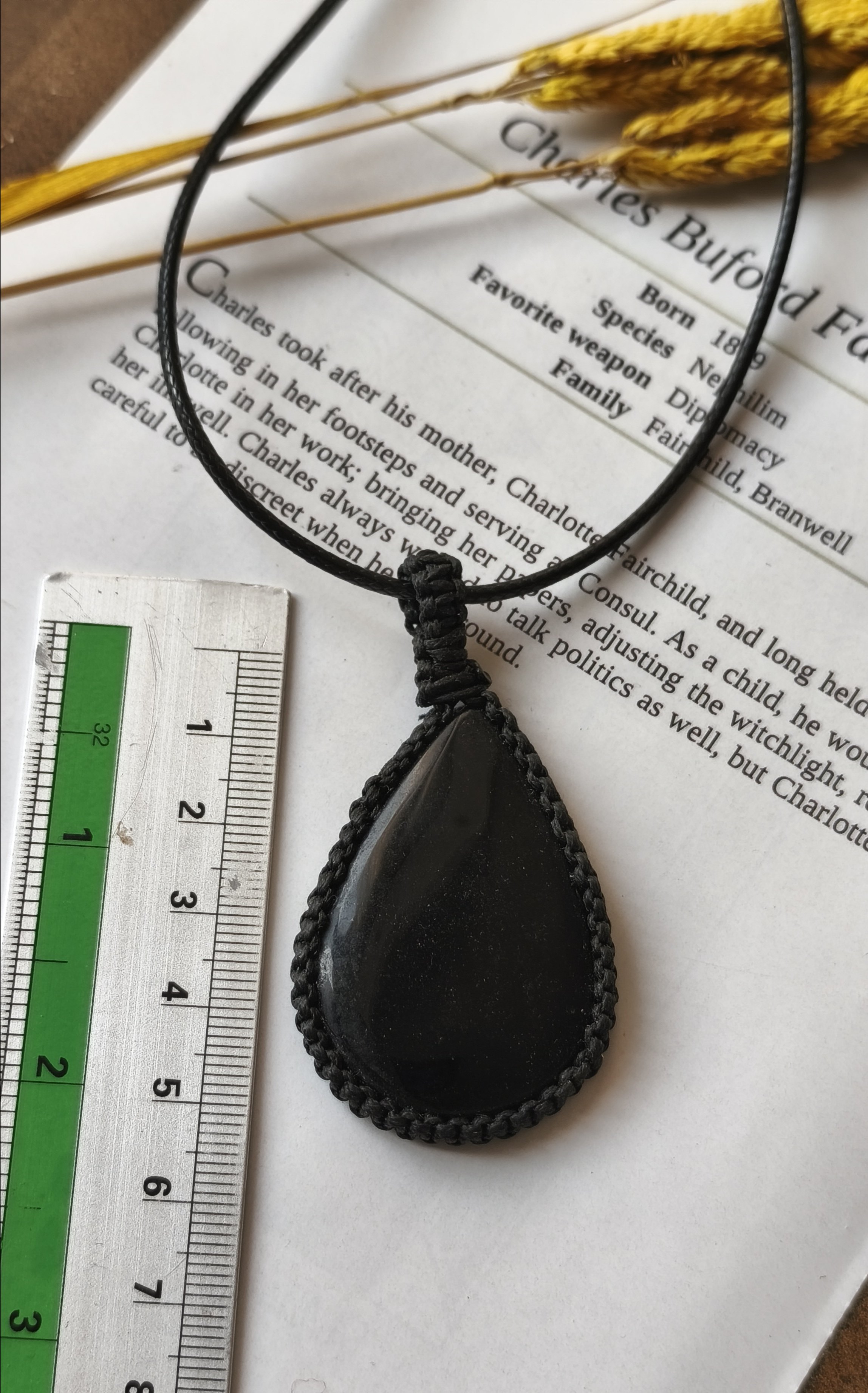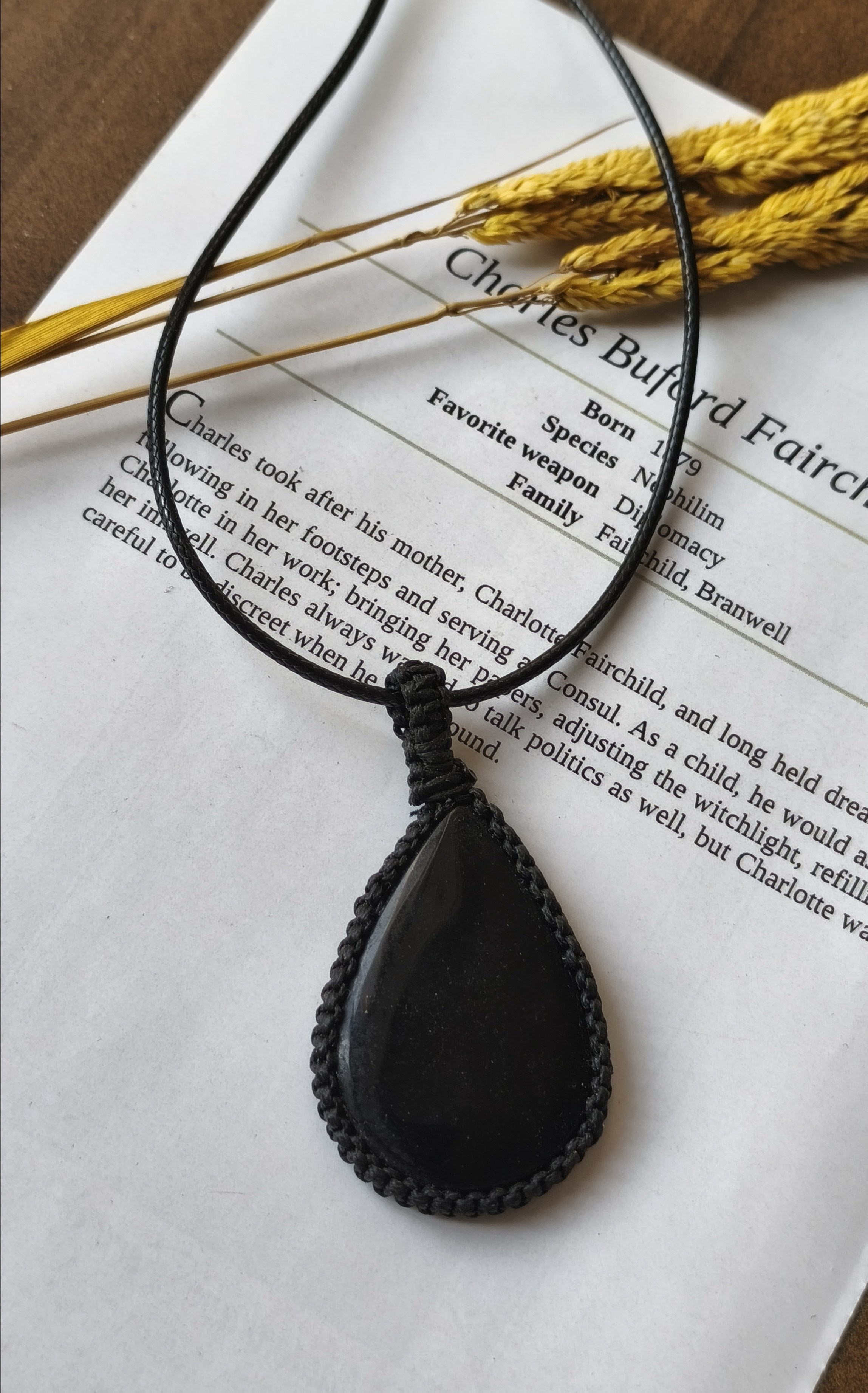 گردنبند سنگ عقیق سیاه با بافت و بند چرم