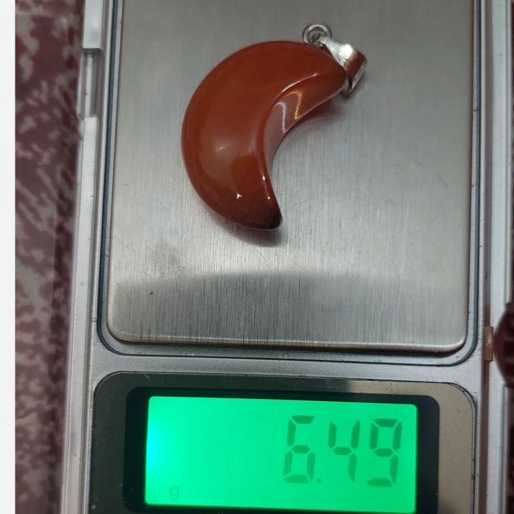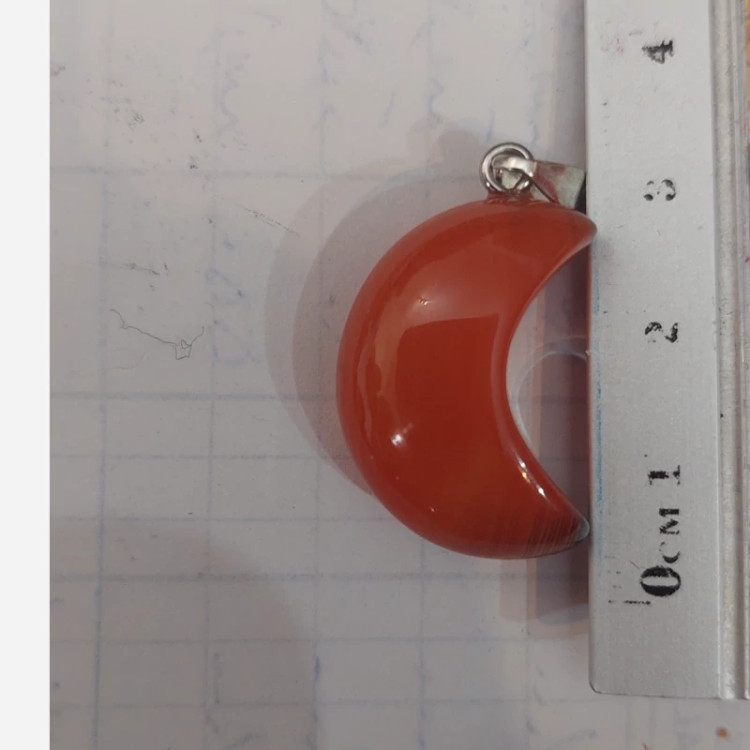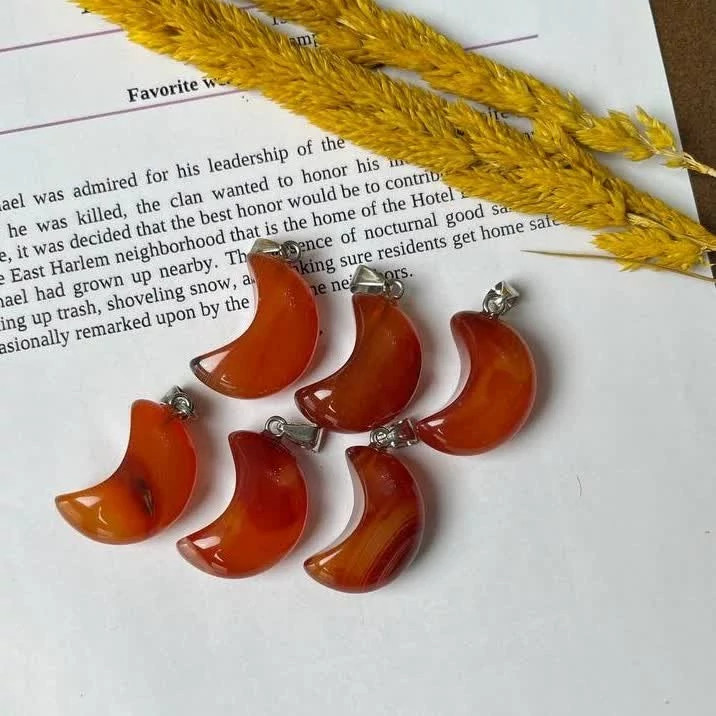 گردنبند سنگ عقیق کارنلین مدل ماه سنگ اصل طبیعی آویز مدال با زنجیر استیل