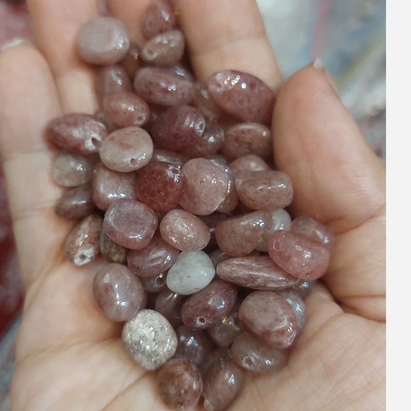 مهره سنگ تامبل چری کوارتز استرابری کوارتز توت فرنگی سوراخ دار 6 در 8 میل سنگ اصل طبیعی