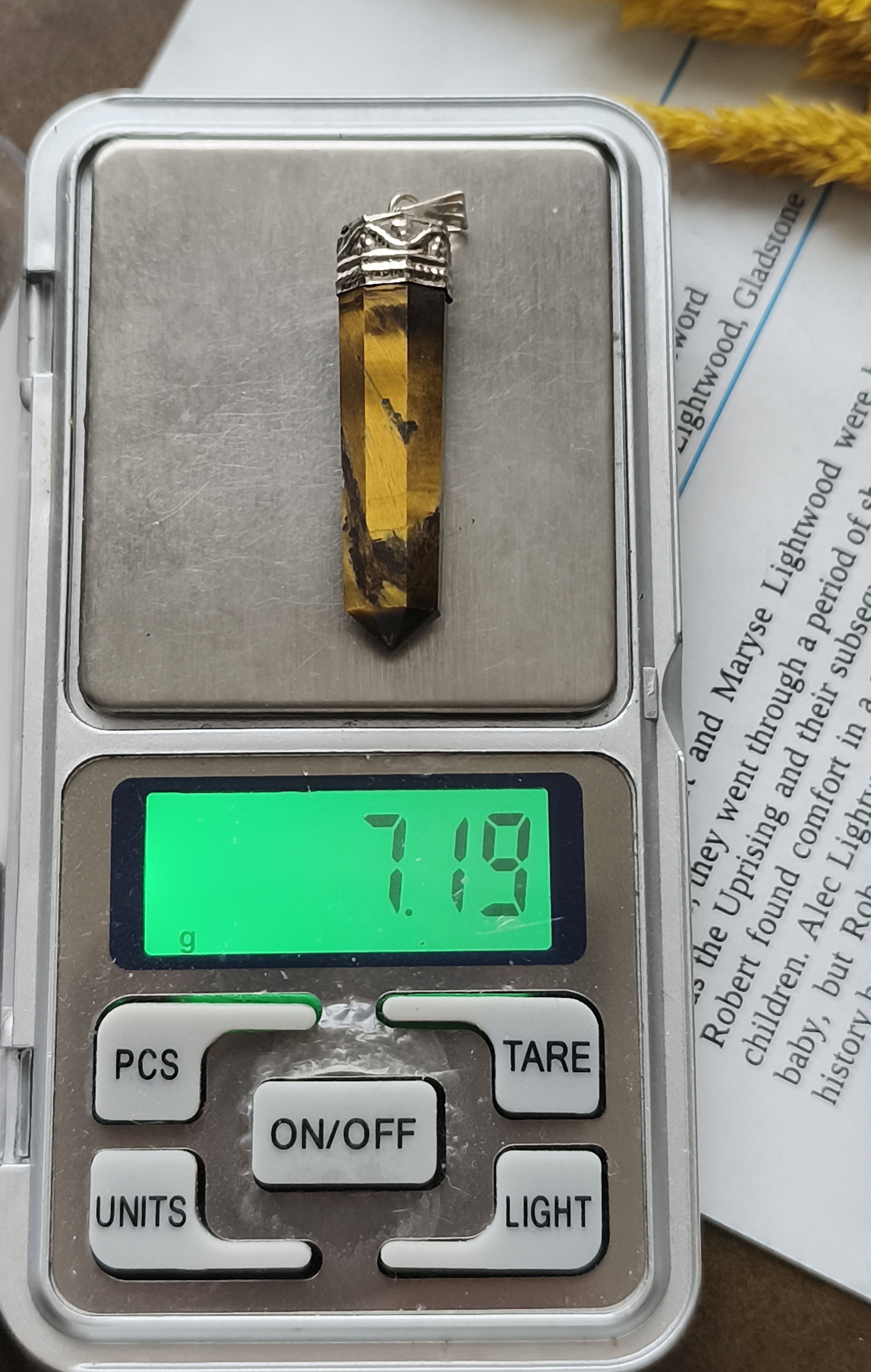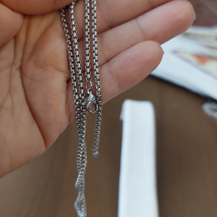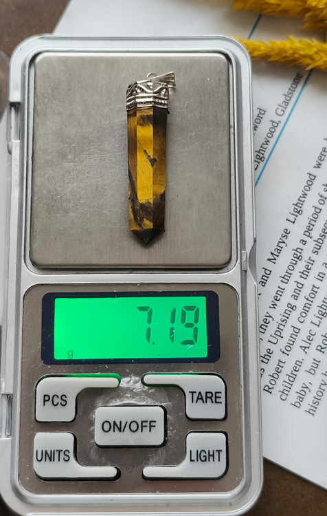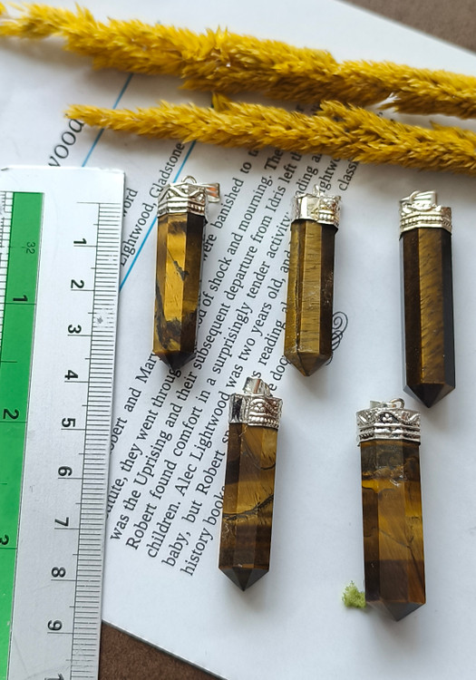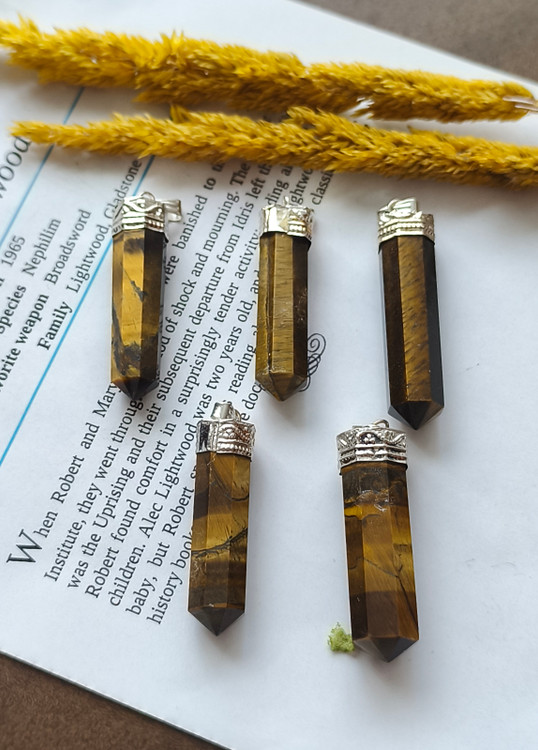 گردنبند سنگ چشم ببر مدادی منشوری با زنجیر استیل رنگ ثابت