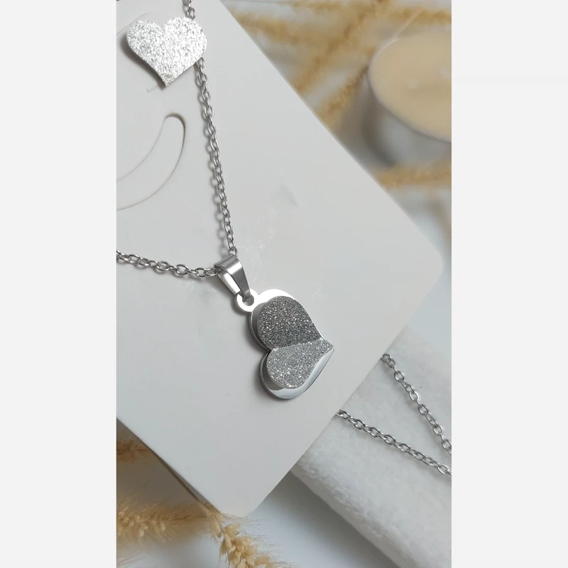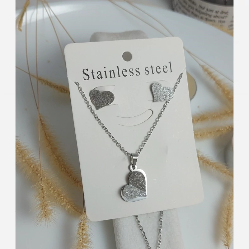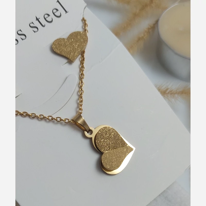 نیم ست استیل طلایی و نقره ای دخترانه زنانه رنگ ثابت طرح قلب