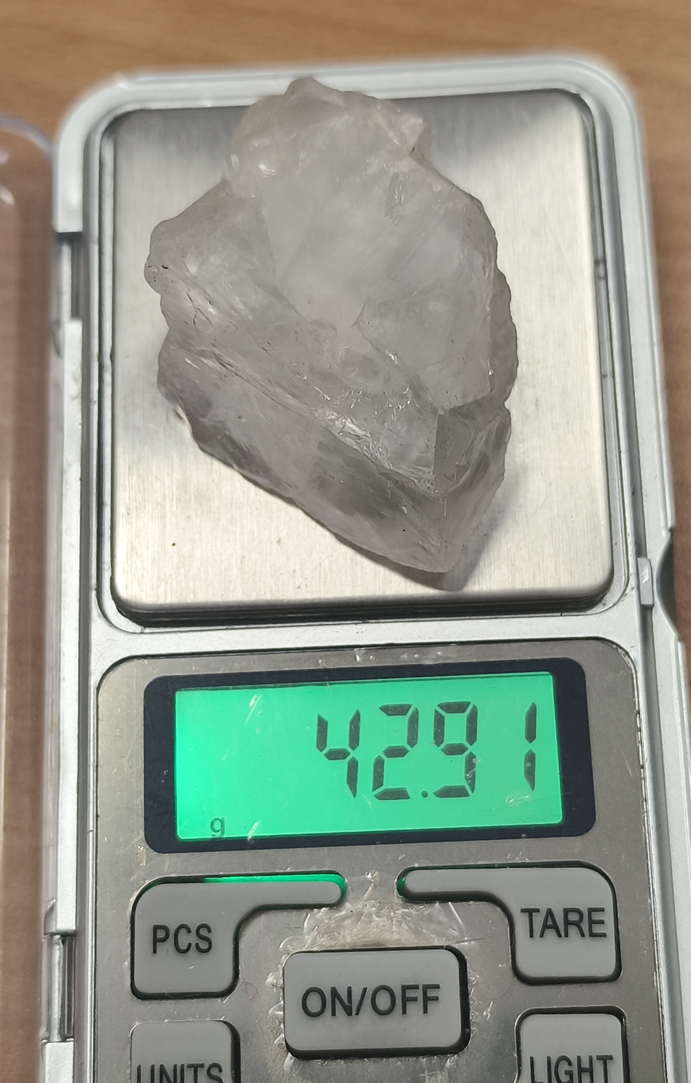 سنگ کریستال کوارتز شفاف تراش نخورده ۴۲.۹۱گرم اصل طبیعی راف کلکسبونی درنجف