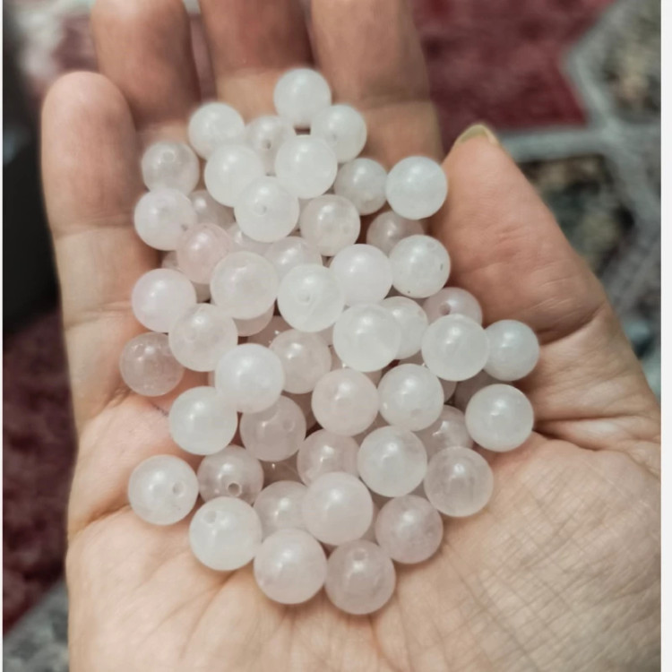 مهره سنگ رزکوارتز برزیلی سایز 8 درجه یک طبیعی گوی اصل سوراخ دار
