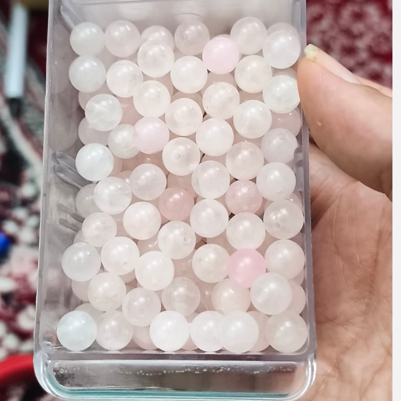 مهره سنگ رزکوارتز برزیلی سایز 8 درجه یک طبیعی گوی اصل سوراخ دار