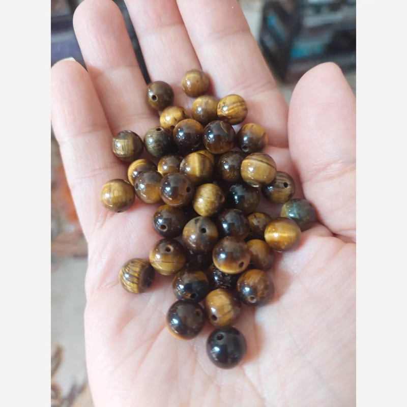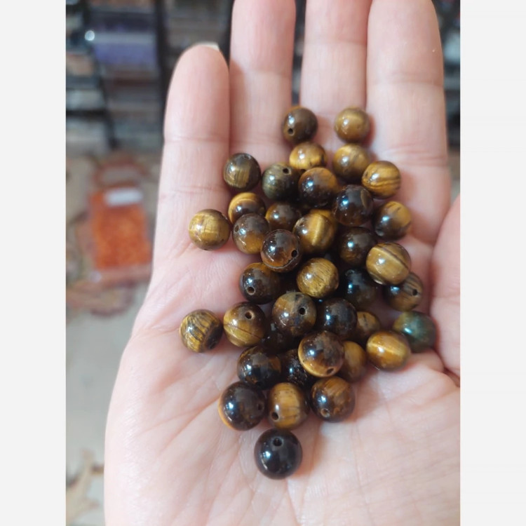 مهره سنگ چشم ببر سایز8 سوراخ دار درجه یک با تلالوئی بی نظیر طبیعی گوی