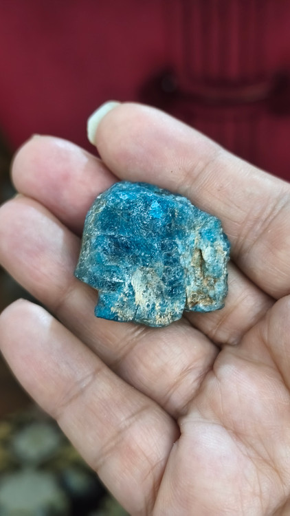 سنگ آپاتیت آبی تراش نخورده 18گرم اصل طبیعی راف کلکسیونی
