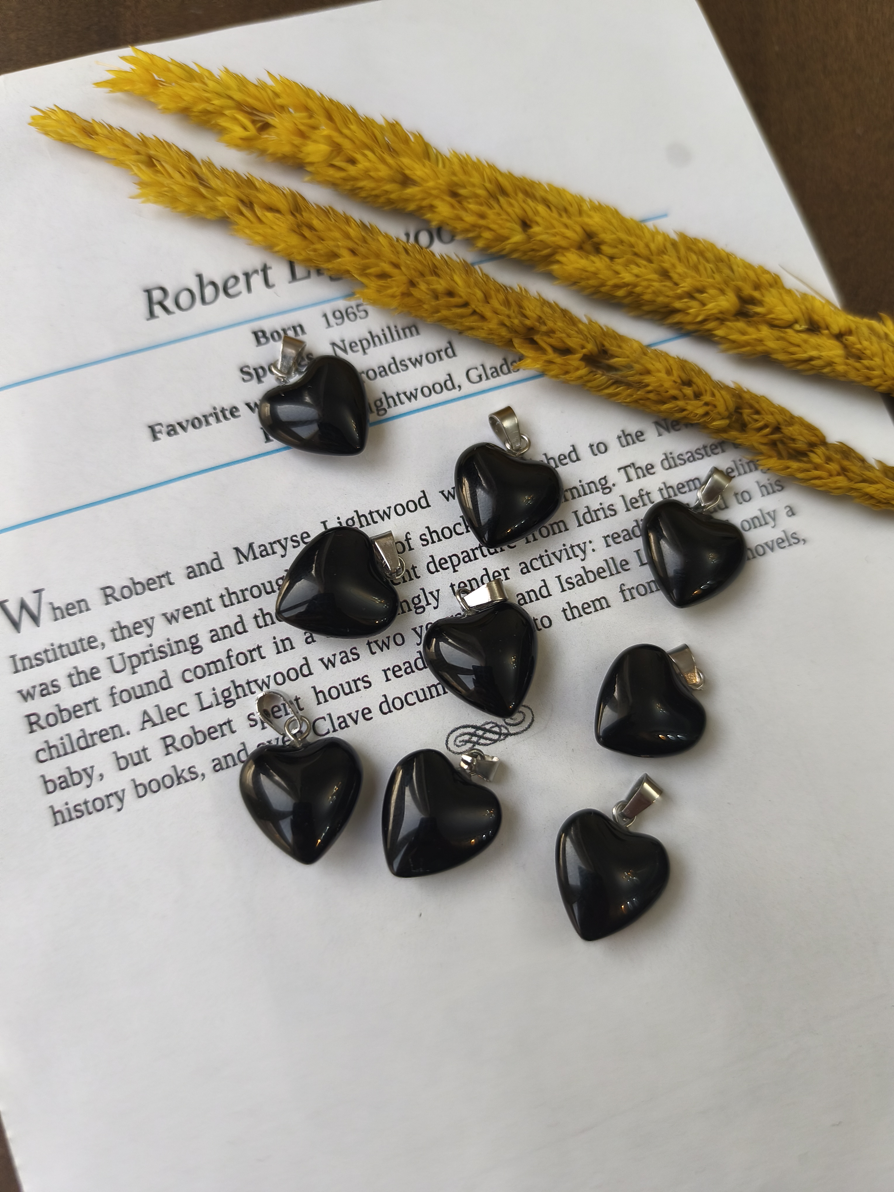 گردنبند سنگ آبسیدین سیاه قلبی سنگ اصل طبیعی به همراه زنجیر استیل