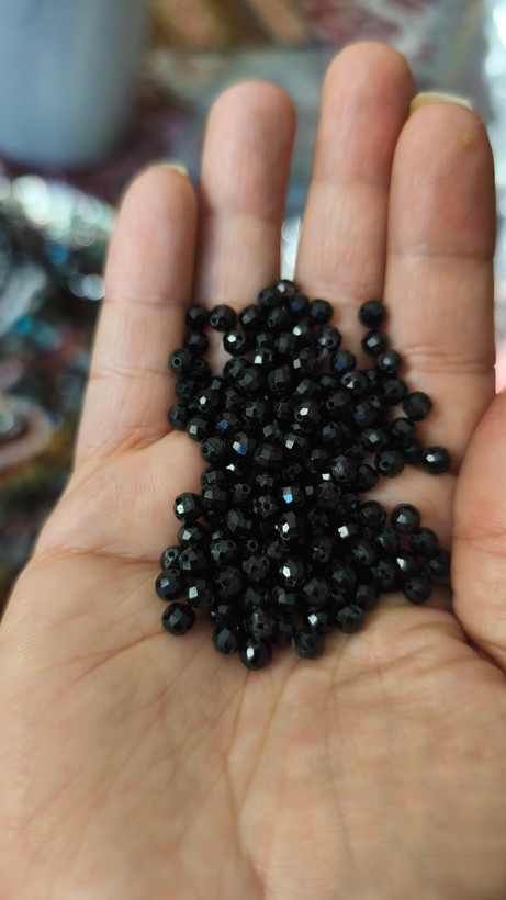 مهره سنگ تورمالین سیاه هند تراش جواهری ۴میل اصل طبیعی سوراخ دار