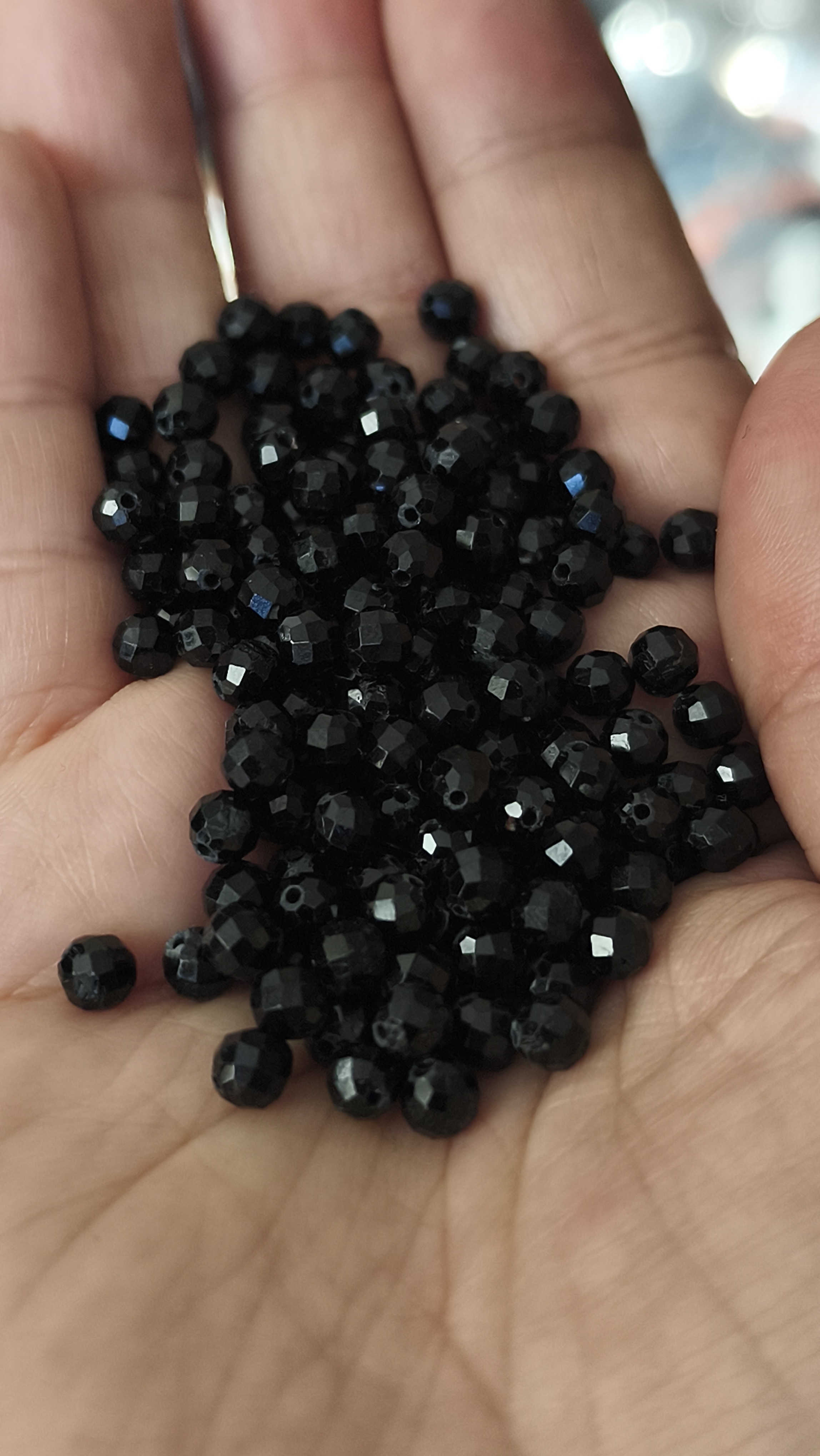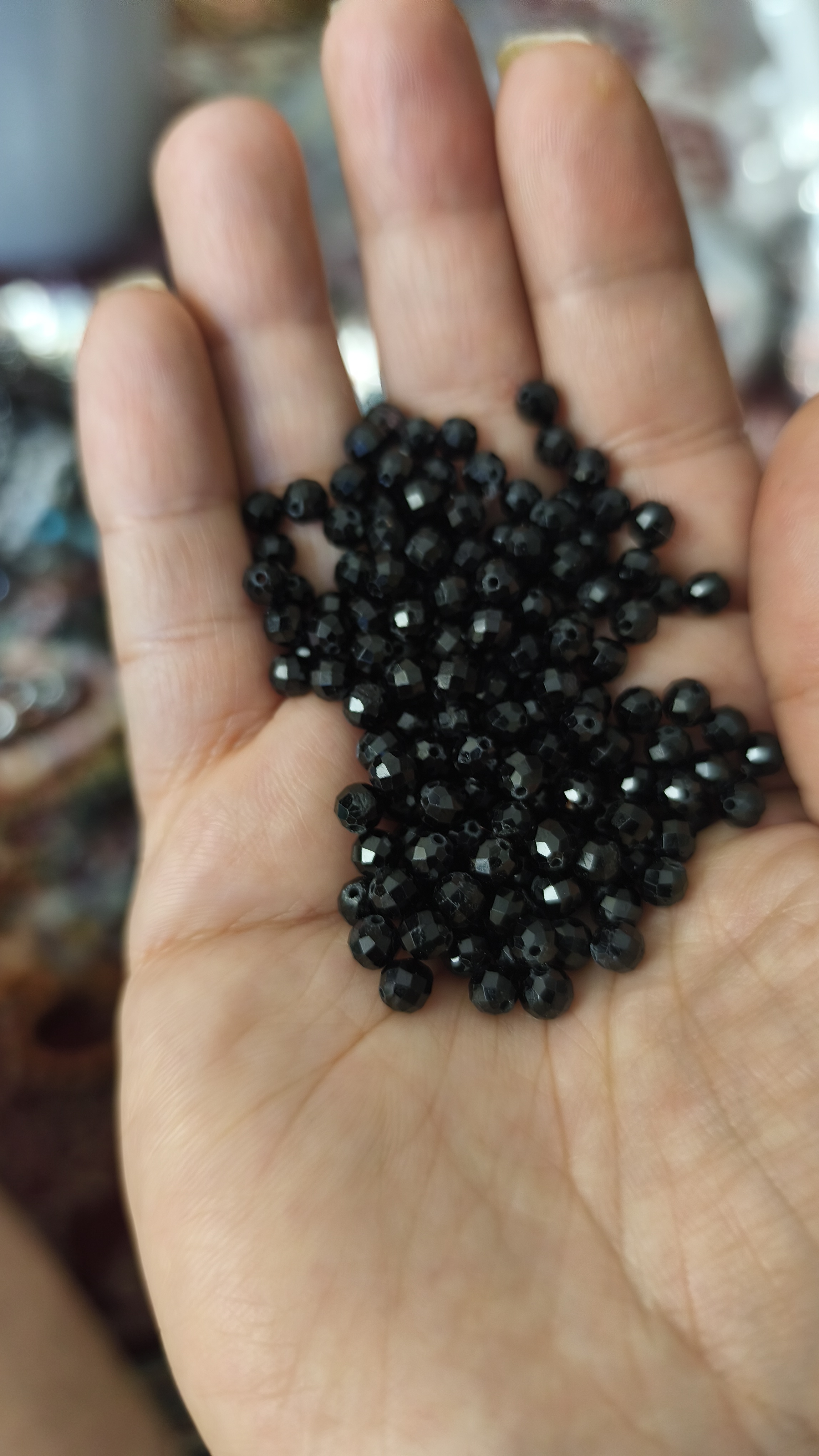 مهره سنگ تورمالین سیاه هند تراش جواهری ۴میل اصل طبیعی سوراخ دار