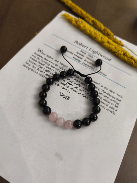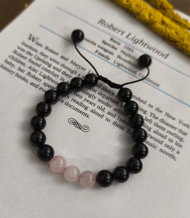 دستبند سنگ تورمالین سیاه و رزکوارتز سنگ اصل طبیعی با نخ درجه یک و گره کشویی